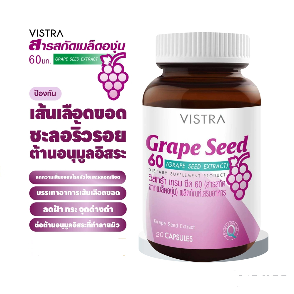 (Set) VISTRA Grape Seed Extract 60 mg. (20cap)+VISTRA Gluta Complex 800 Rice Extract (14cap)