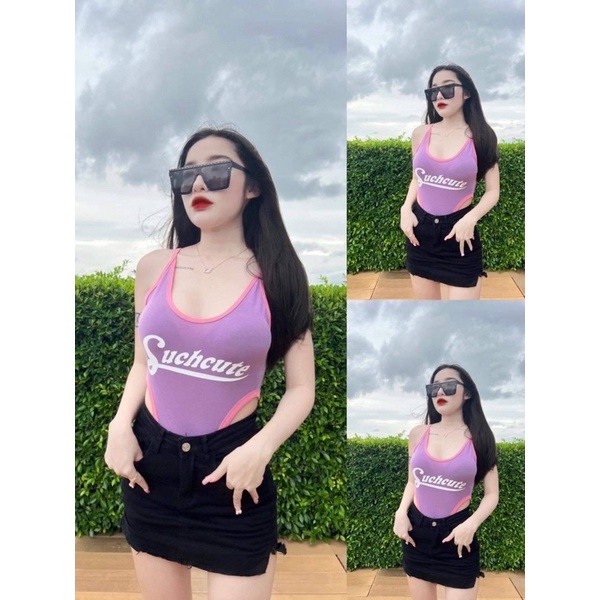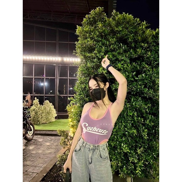 🎊mnv_shop🎊Bodysuitสายเดี่ยว สกรีนหน้าแต่งแถบเว้าเอวสูง เนื้อผ้าเรย่อนยืดได้เยอะใส่เข้ารูปเลย ผ้านิ่มใส่สบายราคาแสนเบา