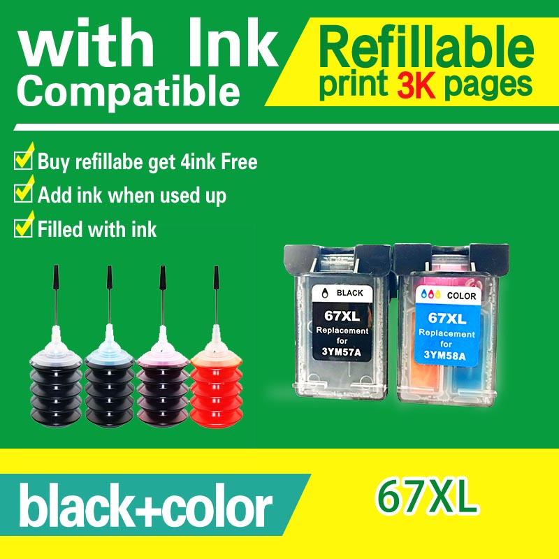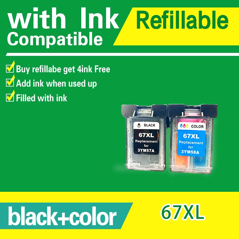 เข้ากันได้ for 67 67XL ตลับหมึก HP67 หมึก HP67XL ตลับหมึกรีฟิลเข้ากันได้สำหรับ 1255 2332 2732 2752 2755 4140 4152 4155