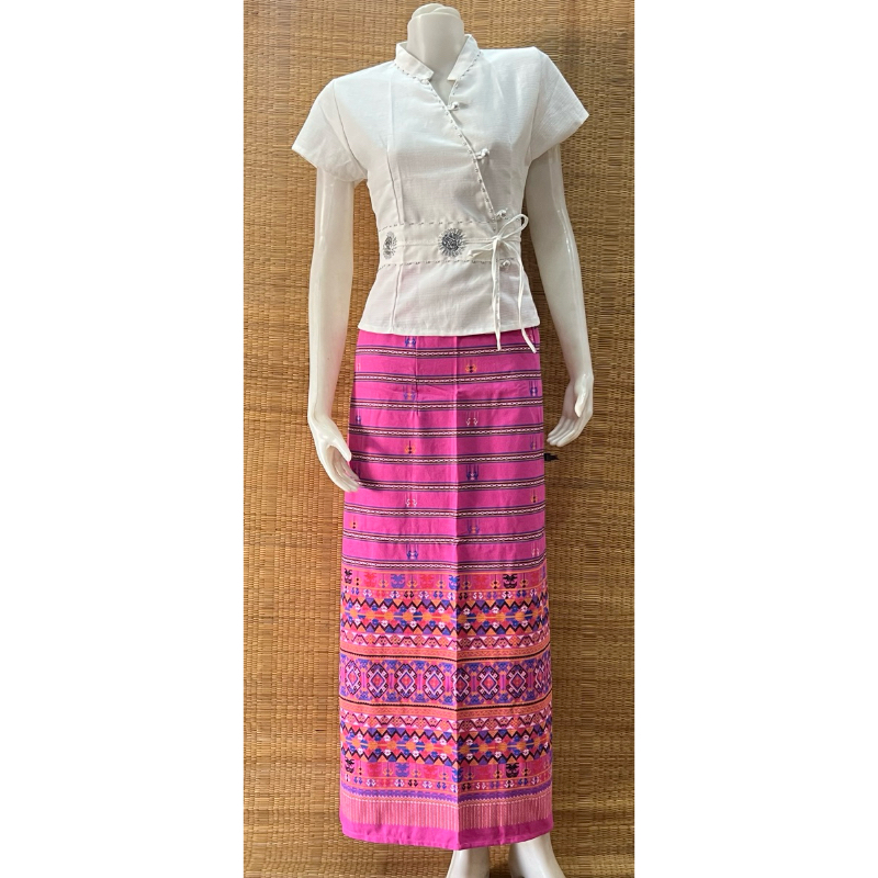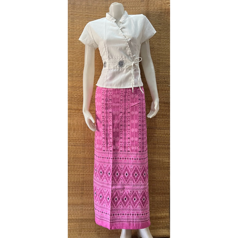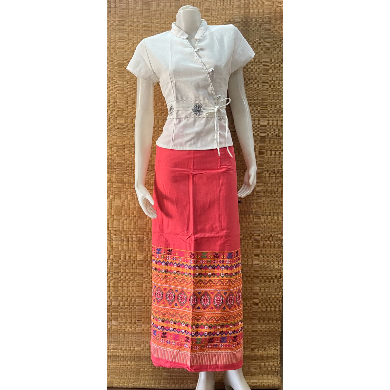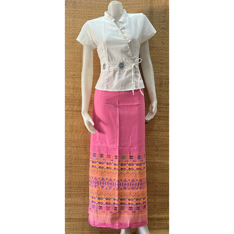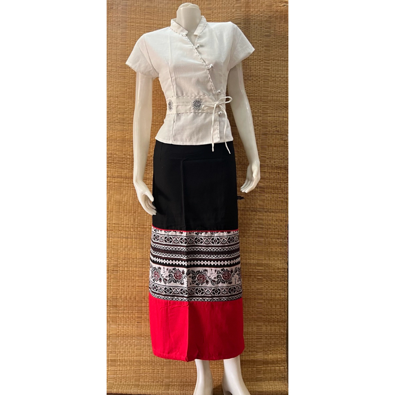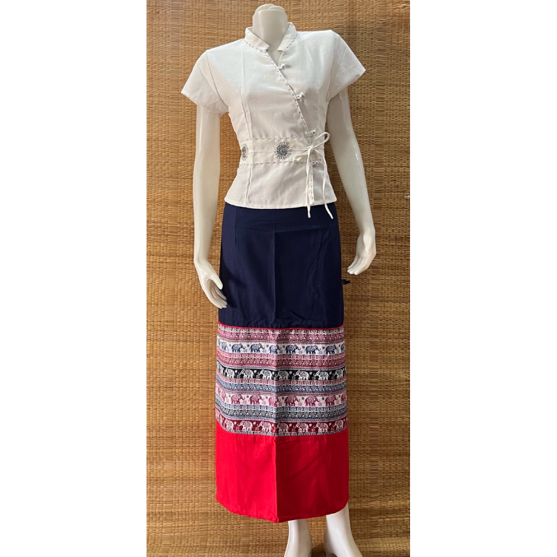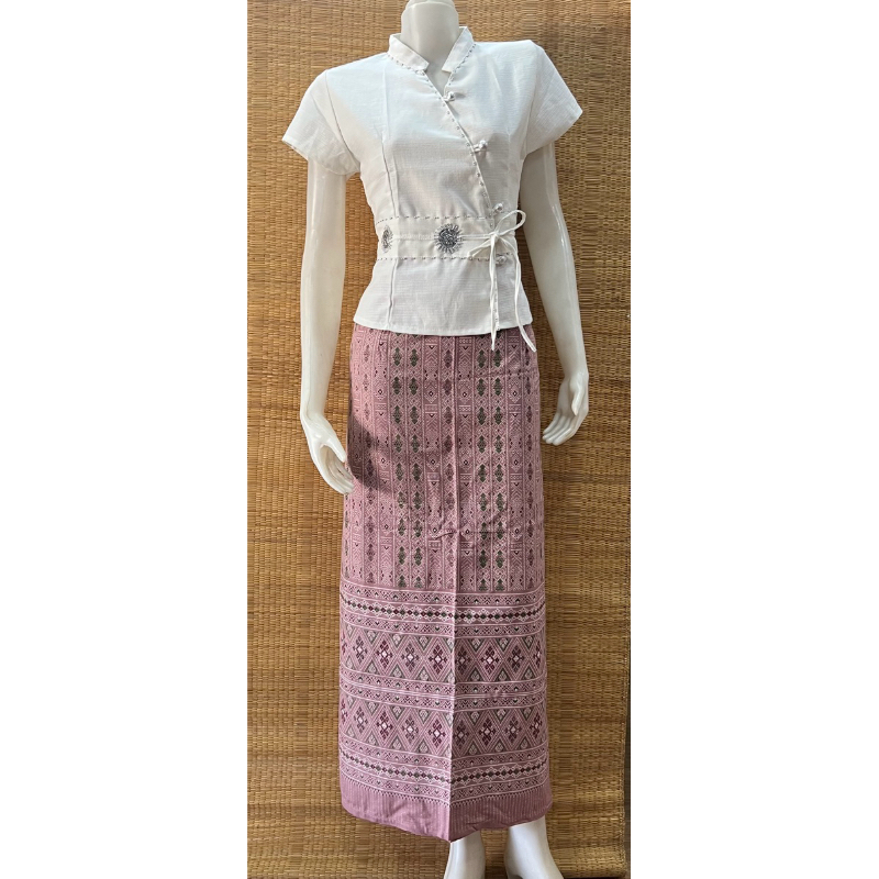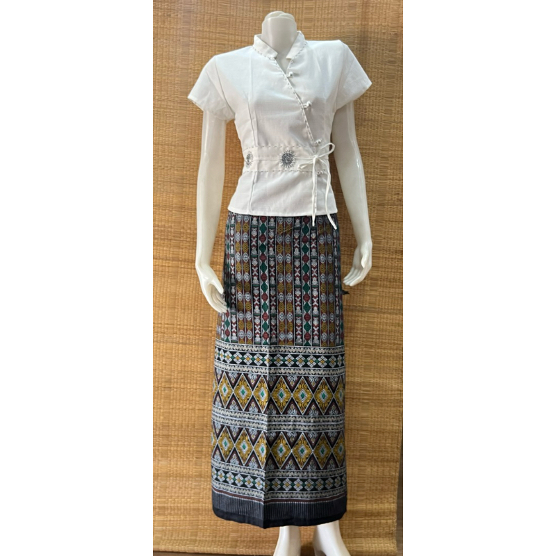 ✨ชุดผ้าฝ้ายเสื้อผ้าฝ้ายชินมัยแต่งเม็ดเงิน+ผ้าถุงป้ายมีเชือกผูกพร้อมใส่✨