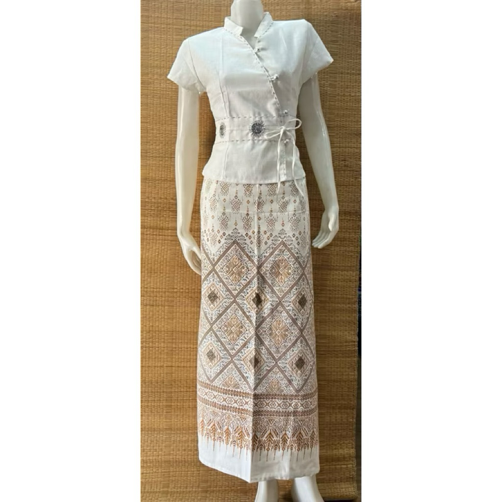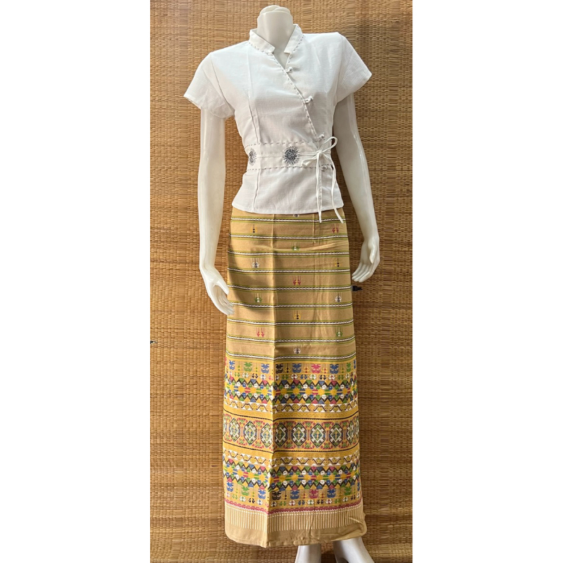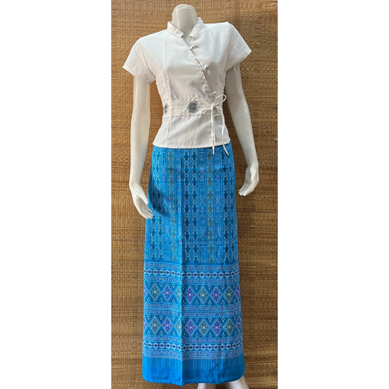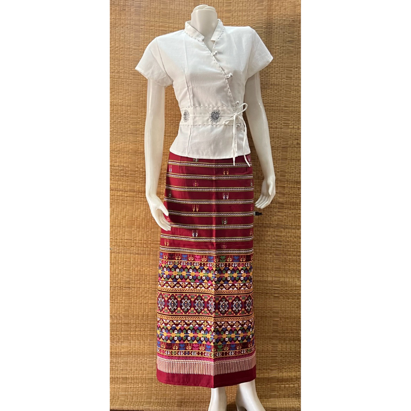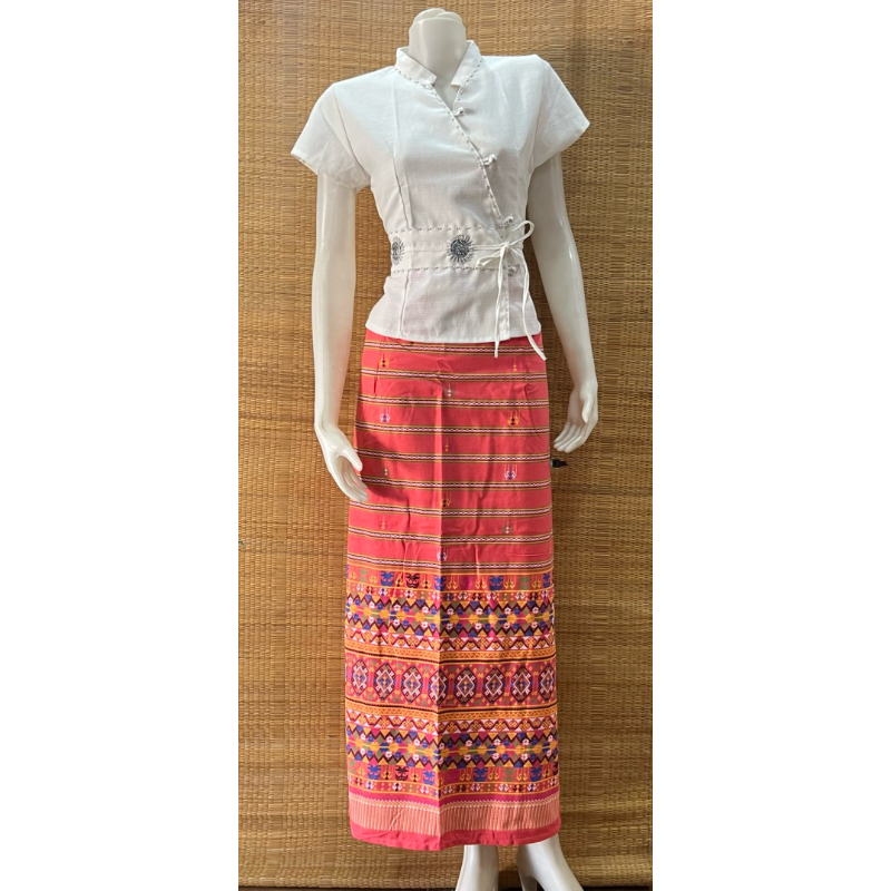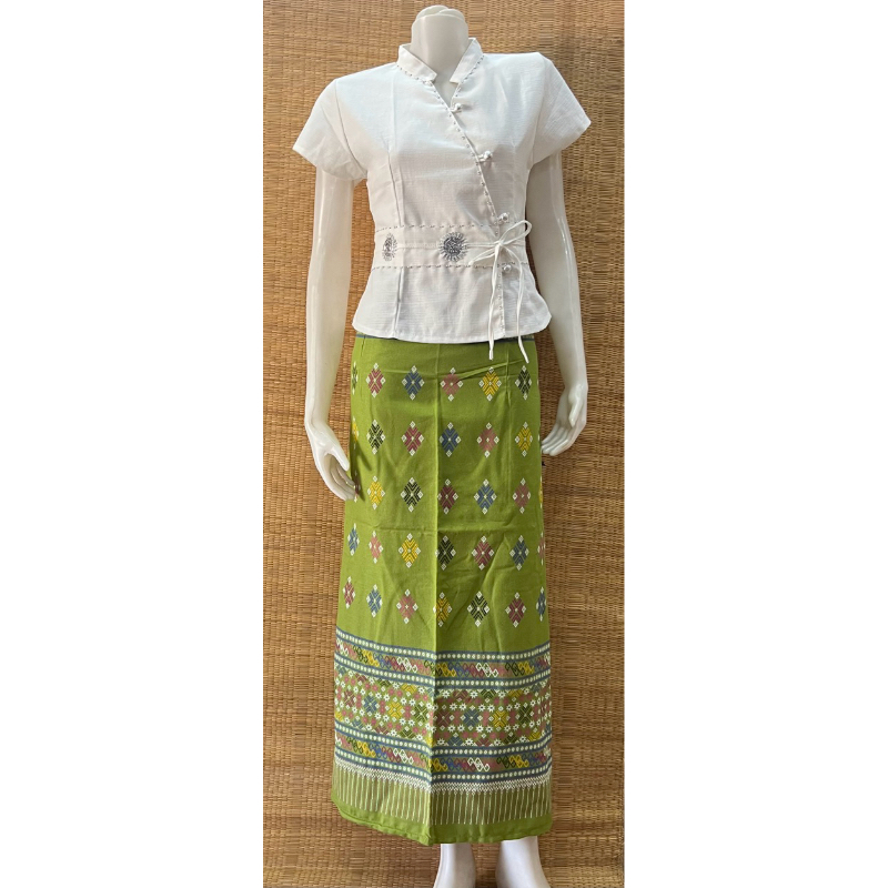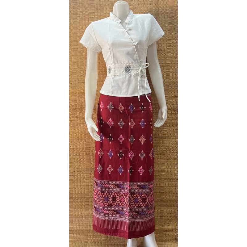 ✨ชุดผ้าฝ้ายเสื้อผ้าฝ้ายชินมัยแต่งเม็ดเงิน+ผ้าถุงป้ายมีเชือกผูกพร้อมใส่✨