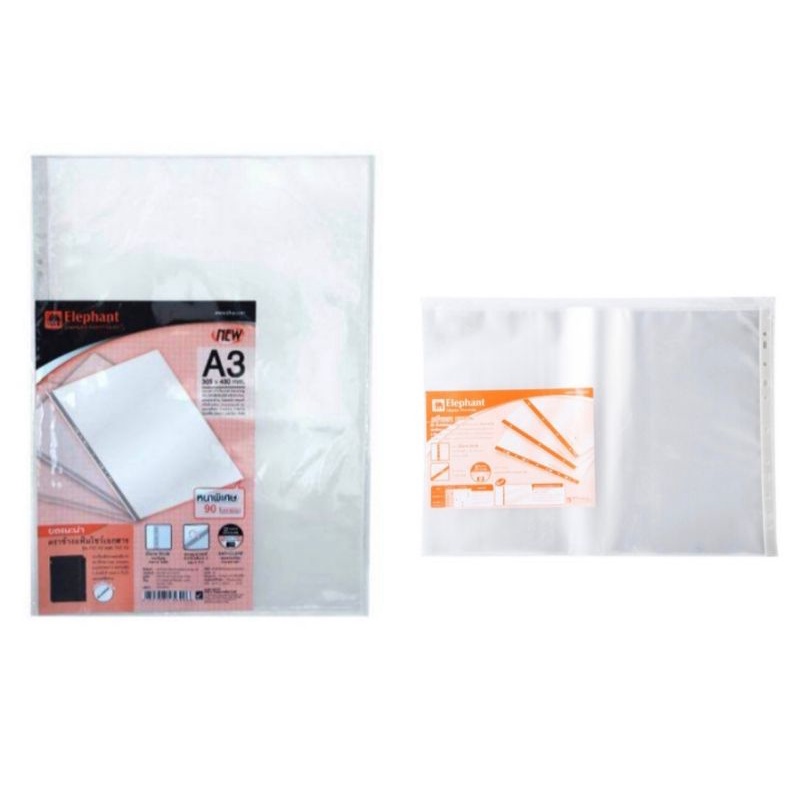 ซองไส้แฟ้ม 11 รู A3 0.09 มม. ตราช้าง (10ซอง) แนวตั้ง , แนวนอน