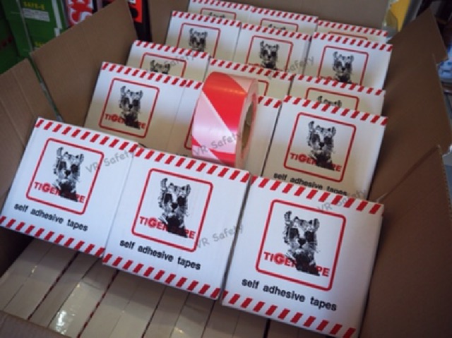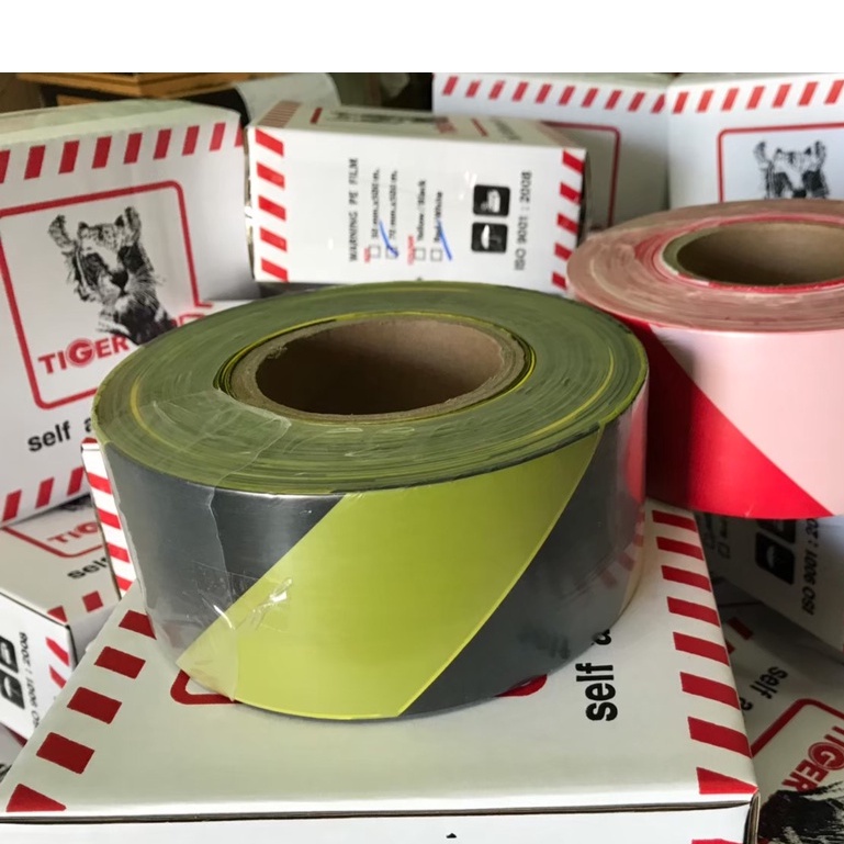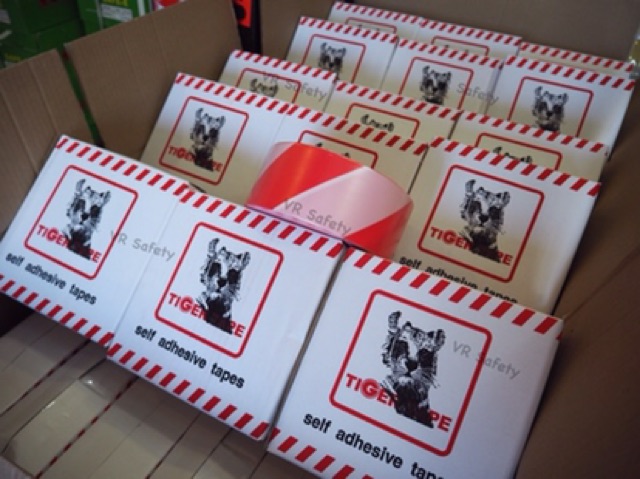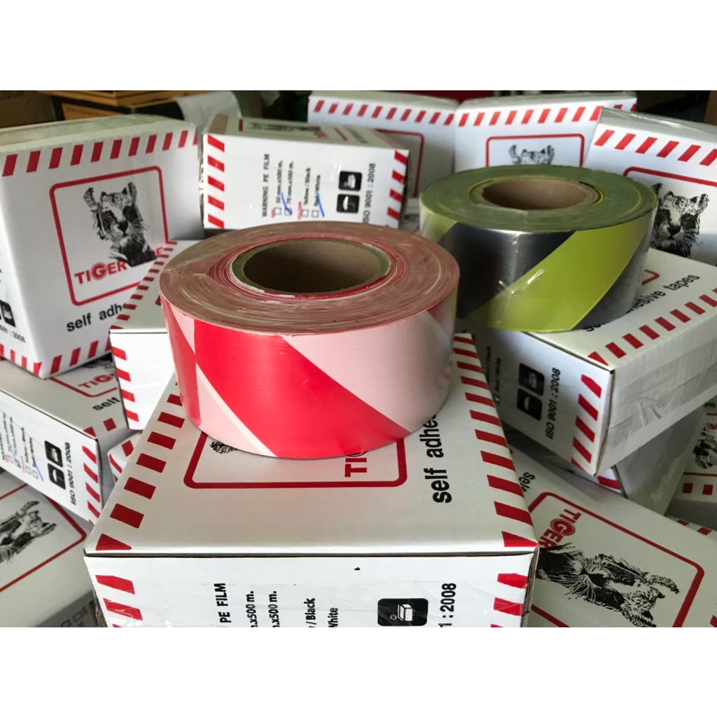 เทปกั้นพื้นที่สี ขาว-แดง ยี่ห้อ TIGER ยาว 500 เมตร ทำจากวัสดุ polyethylene ชนิดหนา คุณภาพดี มีความยืดหยุ่นสูง