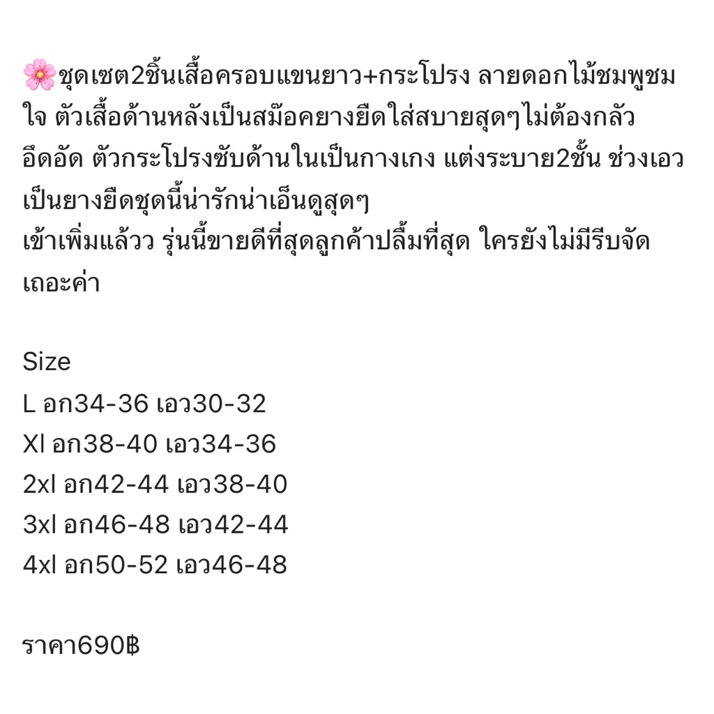 ชุดเซต2ชิ้นเสื้อครอบแขนยาว+กระโปรงลายดอกไม้ชมพู