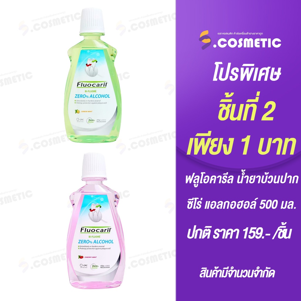 [ชิ้นที่ 2 1 บาท ] Fluocaril ฟลูโอคารีล น้ำยาบ้วนปาก ซีโร่ แอลกอฮอล์ 500 มล. (มี 2สูตร)