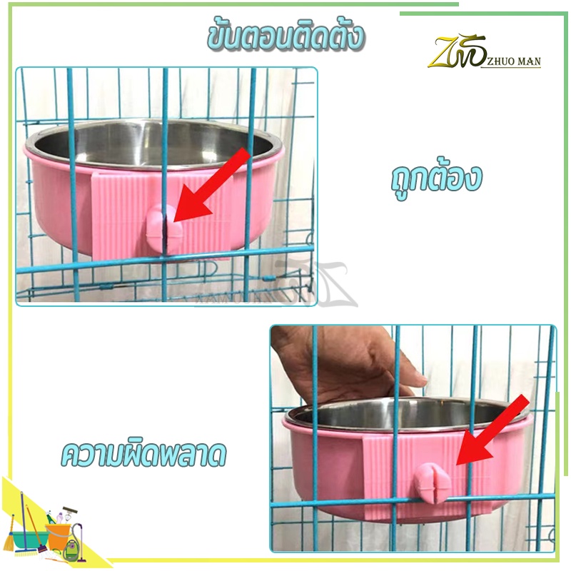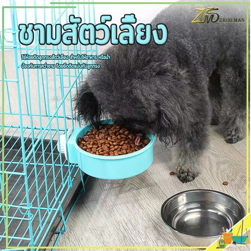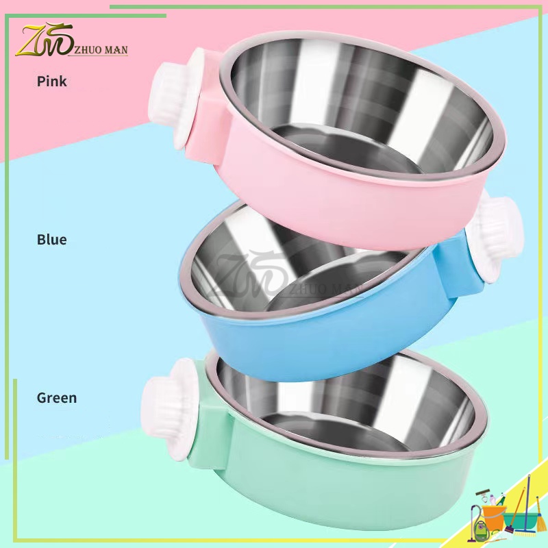 ชามอาหารสัตว์เลี้ยง มี 3 สี สามารถแขวนในกรงนอนสัตว์เลี้ยงหรือที่อื่น ๆ เพื่อป้องกันไม่ให้พลิกคว่ำ ถังด้านในสแตนเลสใช้งานได้นาน