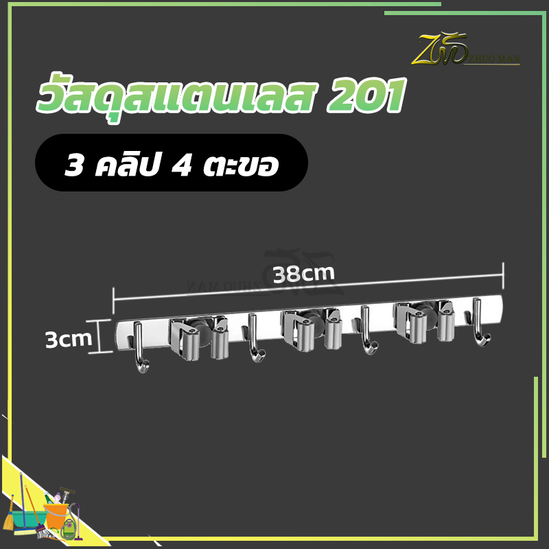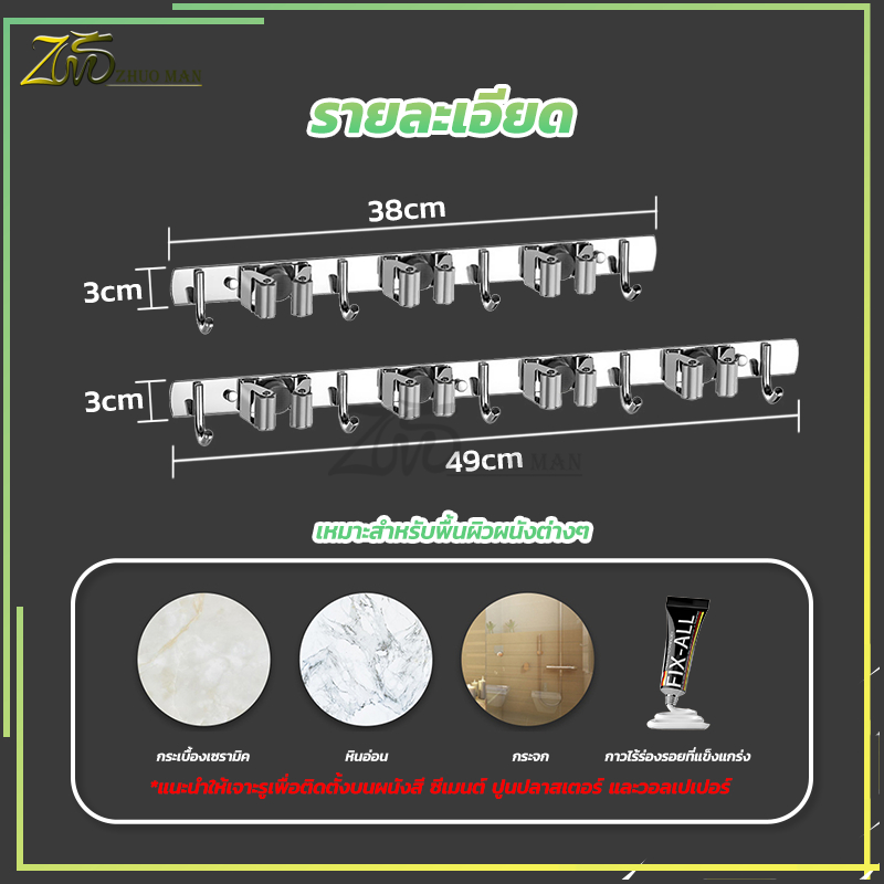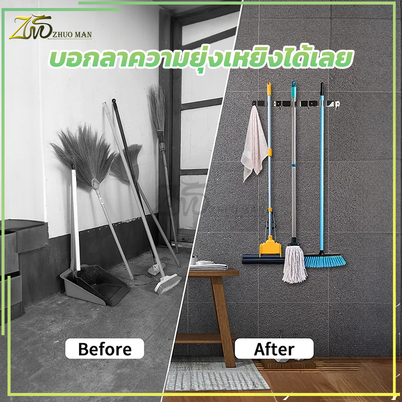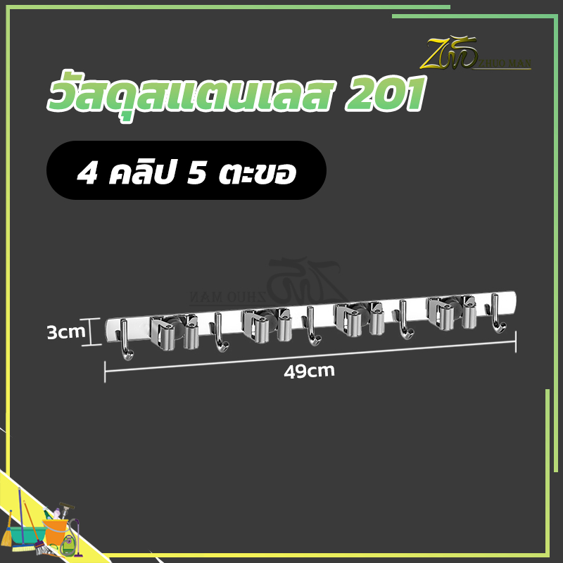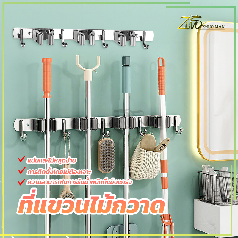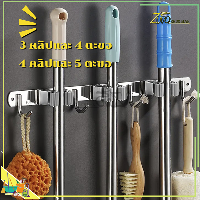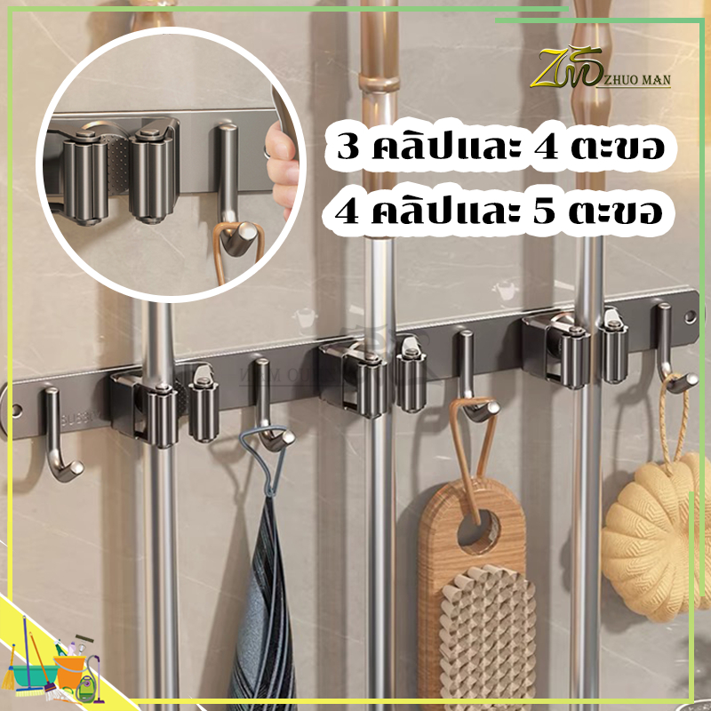 ที่แขวนไม้กวาด ราวตะขอ/เก็บไม้กวาด สเตนเลส 304 อเนกประสงค์ ไม้กวาด และตะขอไม้ถูพื้น ปรับได้อัตโนมัติ ไม้ถูพื้น