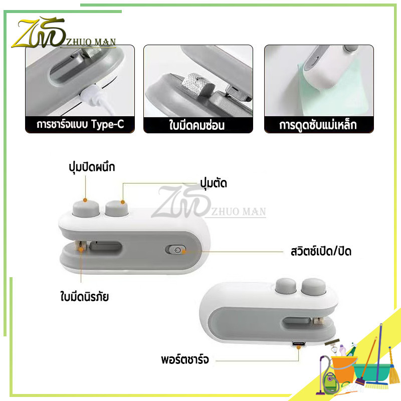 เครื่องซีลถุง 2-in-1 เครื่องซีลขนาดเล็ก เครื่องซีลถุงพลาสติก เครื่องซีลถุงแบบพกพา ดีไซน์แม่เหล็กด้านหลัง ชาร์จ USB