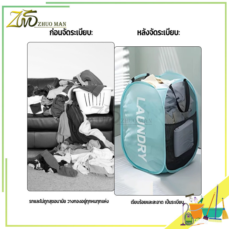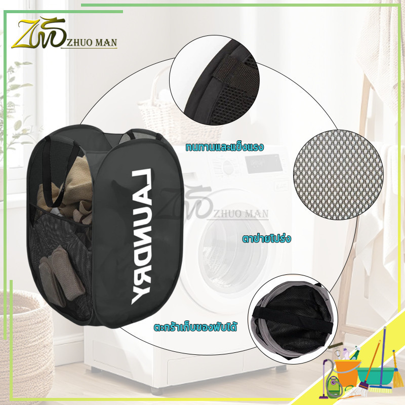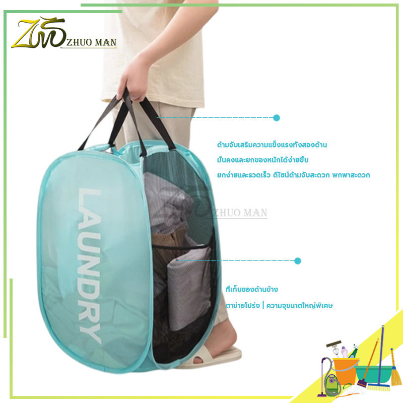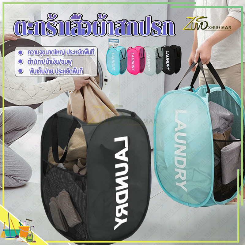 ตระกร้า ผ้า ตะกร้าเสื้อผ้าสกปรก ตะกร้าใส่ผ้าพับได้ ใส่ผ้าเตรียมซัก อเนกประสงค์พับเก็บได้ แบบตาข่ายยืดหยุ่น และหูจับ