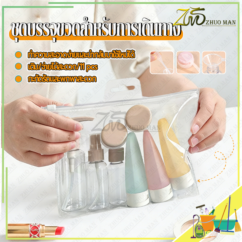 ชุดบรรจุขวดสําหรับการเดินทาง11ชิ้น ชุดขวดเดินทาง ขวดปั้ม ชุดขวดรีฟิล หลอดแบ่ง สําหรับใส่โลชั่น ครีมอาบน้ํา เครื่องสําอาง