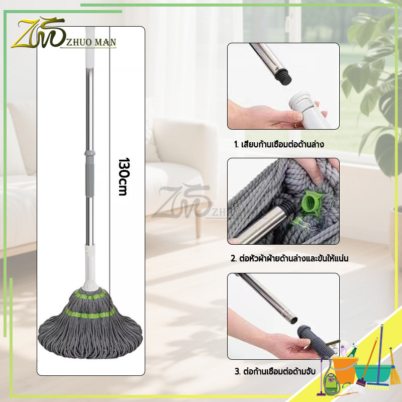 เเบบบิดน้ำในตัว ไม้ถูพื้น ไม่ถูพื้นแบบ 2ini1ด้ามสแตนเลส ปรับยืดหดได้ ถูง่าย แห้งไว สะอาดในพริบตา หมุนได้ 360 องศา