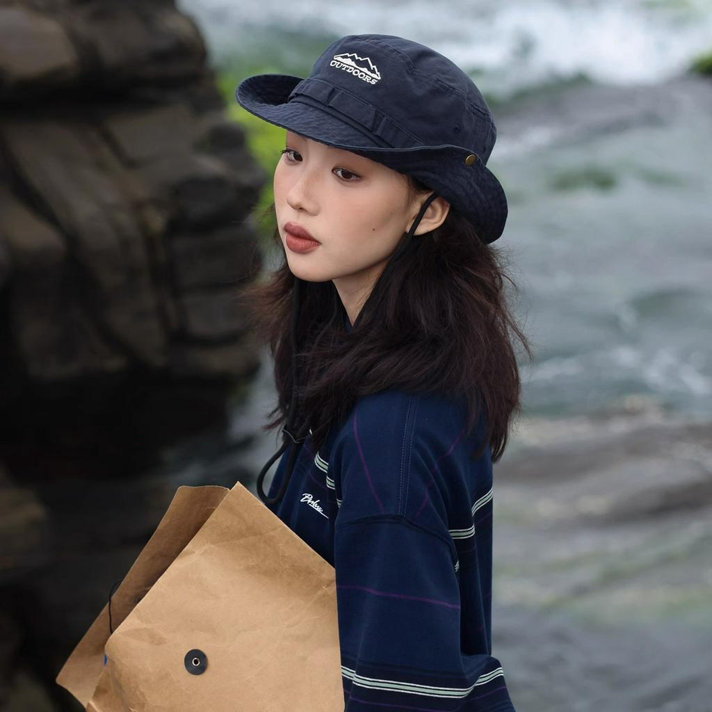 หมวกบักเก็ต กันแดด แบบผูกเชือก เหมาะกับใส่ตกปลากลางแจ้ง แฟชั่นฤดูร้อน สไตล์คาวบอย สําหรับผู้ชาย และผู้หญิง
