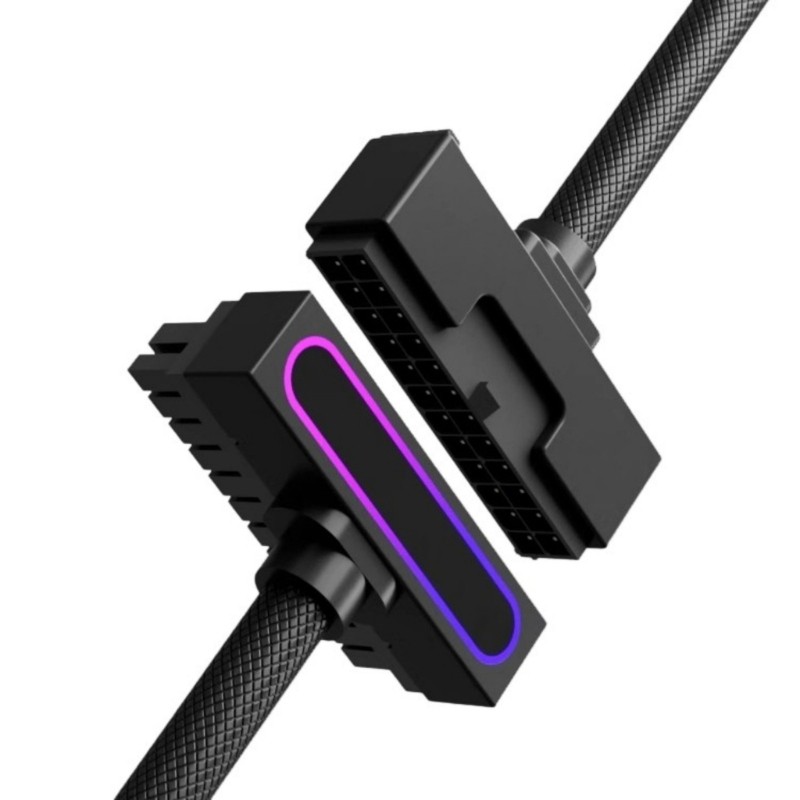 MOON 90 องศามุมสายไฟ 24PIN PC Extension Cable การเชื่อมต่อ ARGB Synchronization สําหรับเมนบอร์ด PC