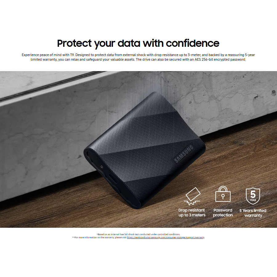 Samsung T9 Portable SSD USB 3.2 Gen2x2 (20Gbps) Capacity: 1TB/2TB/4TB