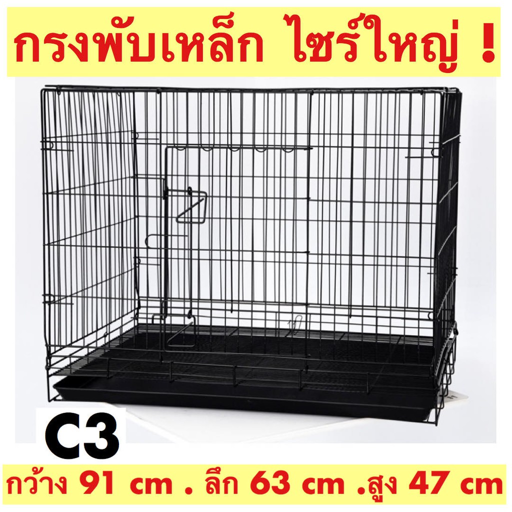 กรงพับได้ ขนาดใหญ่ กรงสุนัข กรงหมา กรงแมว กรงกระต่าย C3 กรงพับเหล็ก พื้นเหล็ก พร้อมถาดพลาสติก กรงเบอร์ 1