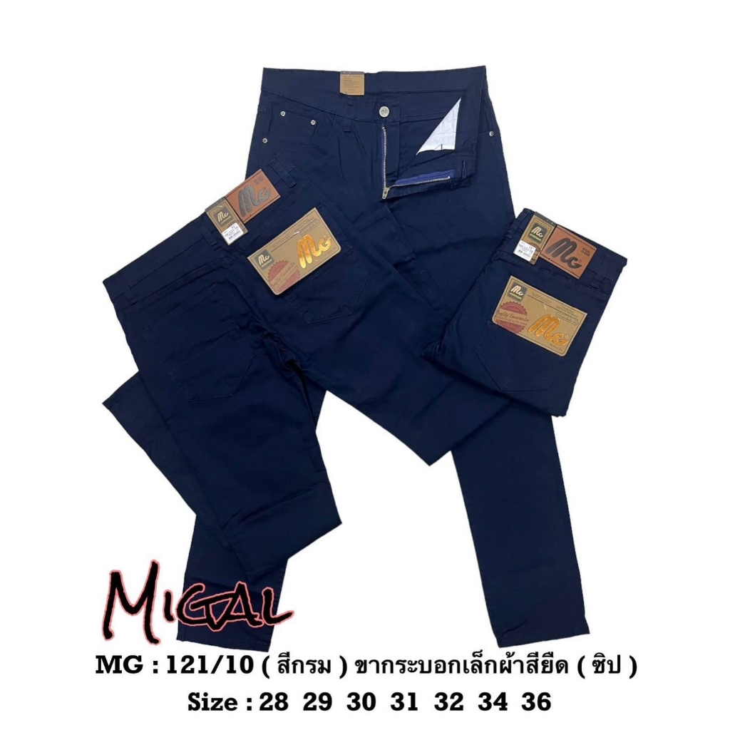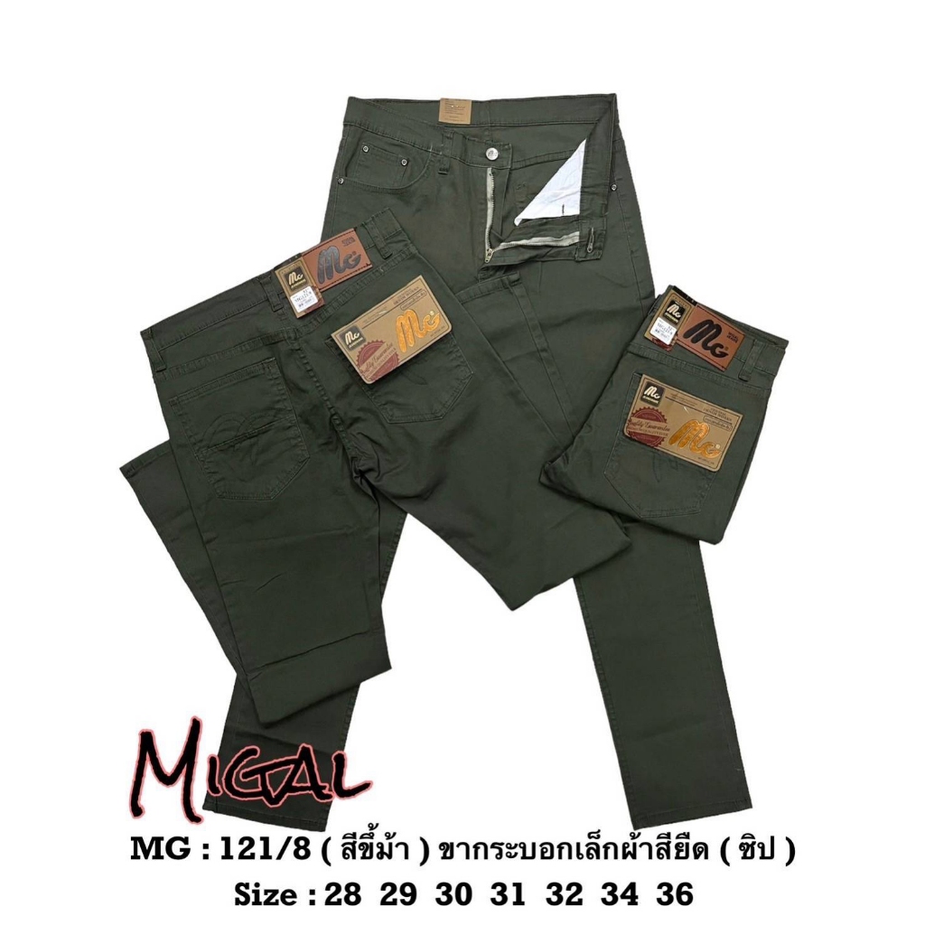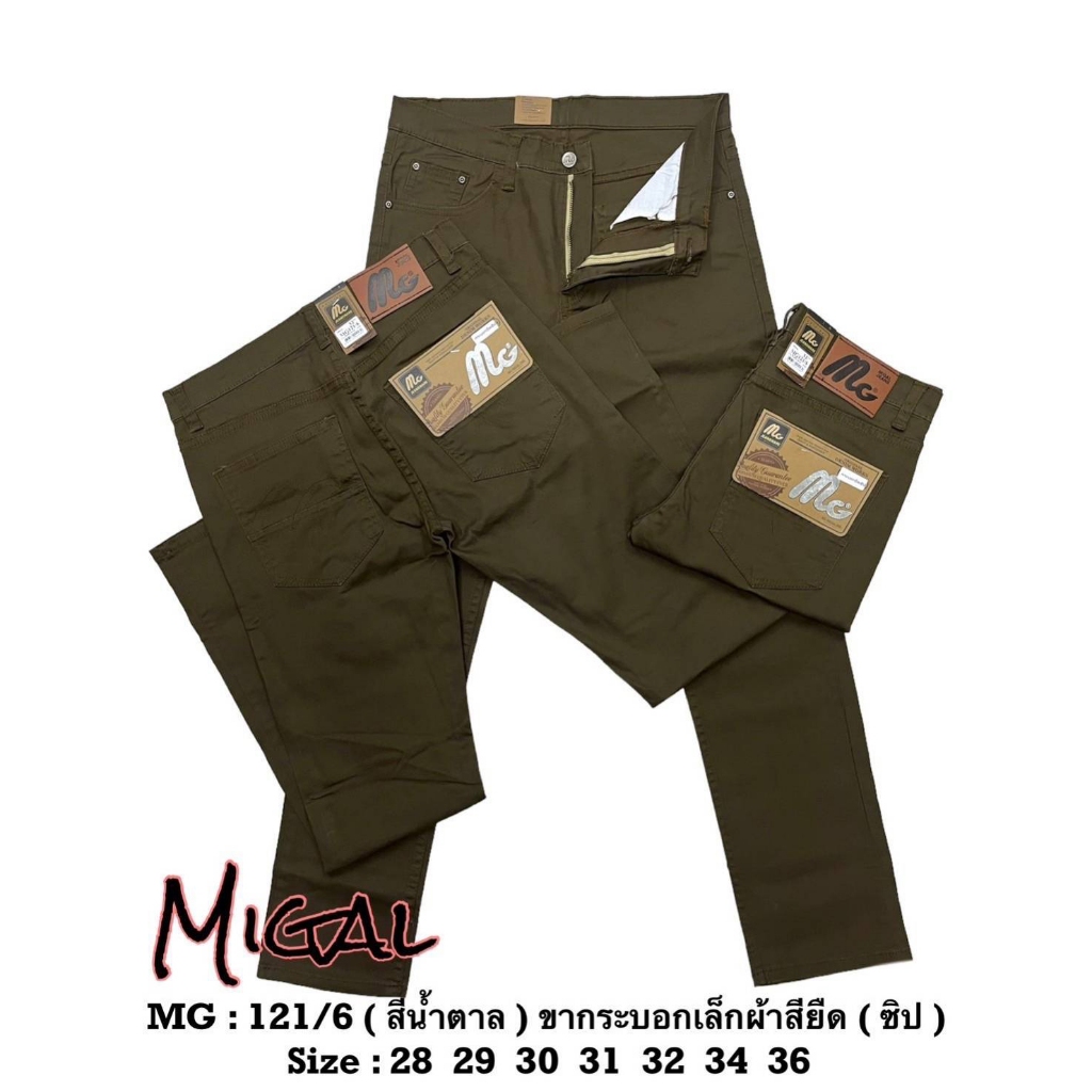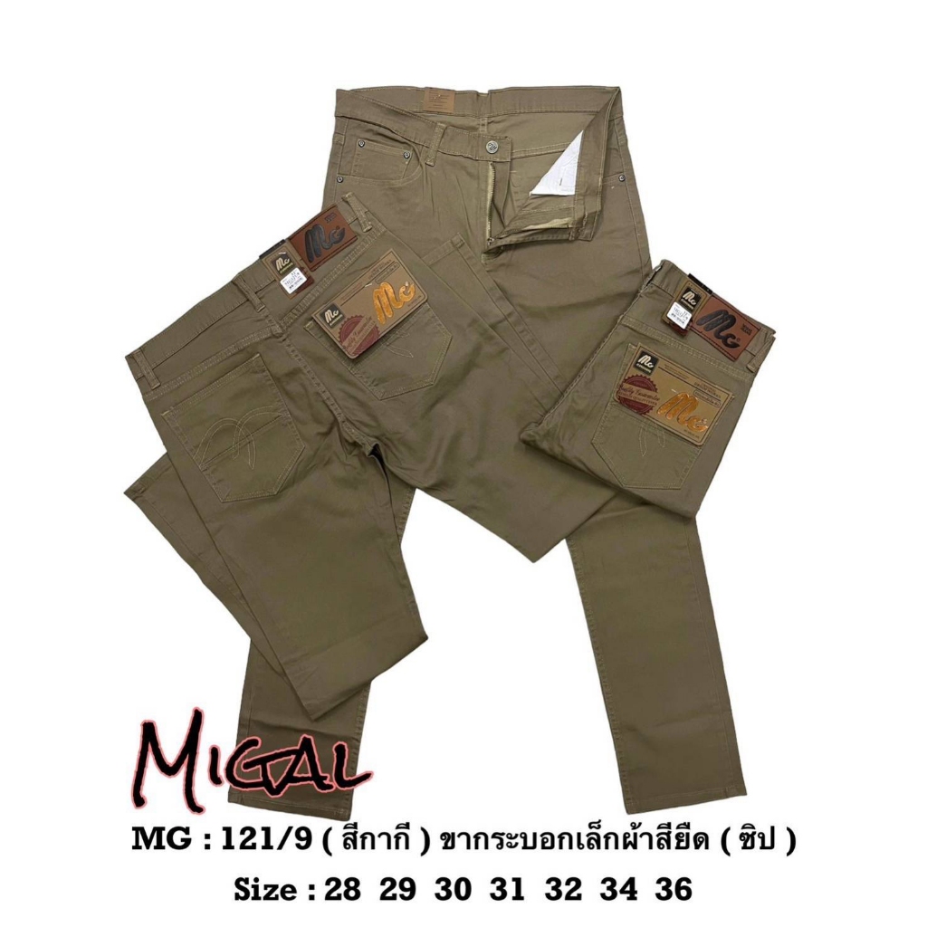 MG121 กางเกงขายาว ผ้าชิโนยืด ทรงขากระบอกเล็ก ผ้าไม่หนา ไม่บาง ใส่สบาย เป้าซิป