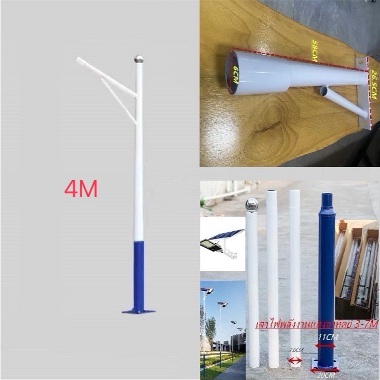 ขา+เสา+เสาตัวยื่นโคมไฟโซล่าเซลล์/ไฟUFOหรือใช้โคมไฟถนนได้ทุกชนิดมีขนาดยาว3-6เมตร เหล็กอย่างดี