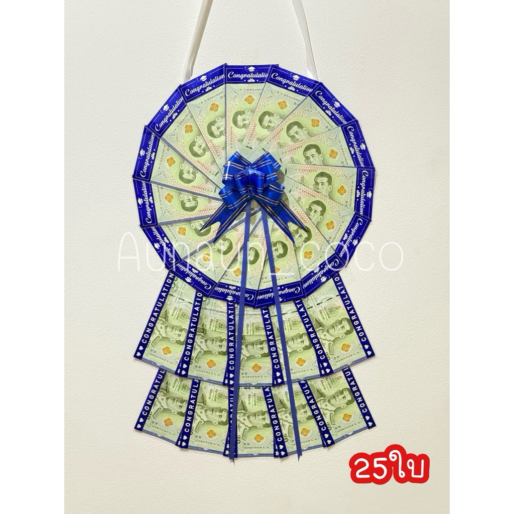 พวงมาลัยเงิน พิมพ์ลาย Congratulations ใส่ธนบัตรได้ 25 ใบ ใส่ได้ทุกแบงค์ ของขวัญบัณฑิต ของขวัญปัจฉิม ขนาดซอง 3*6.5 นิ้ว