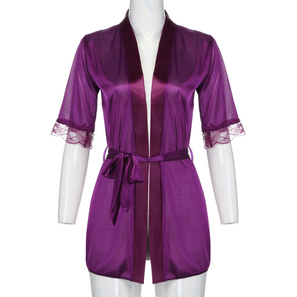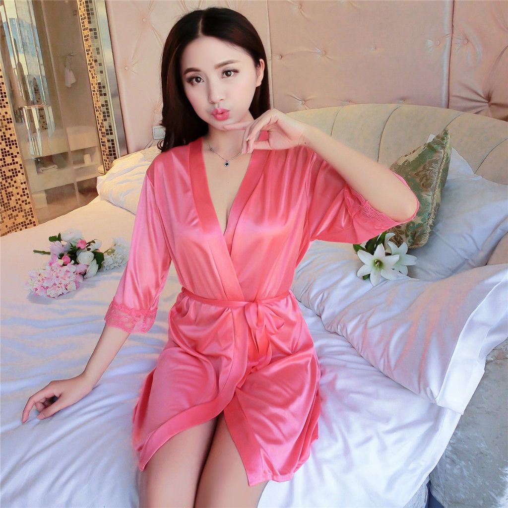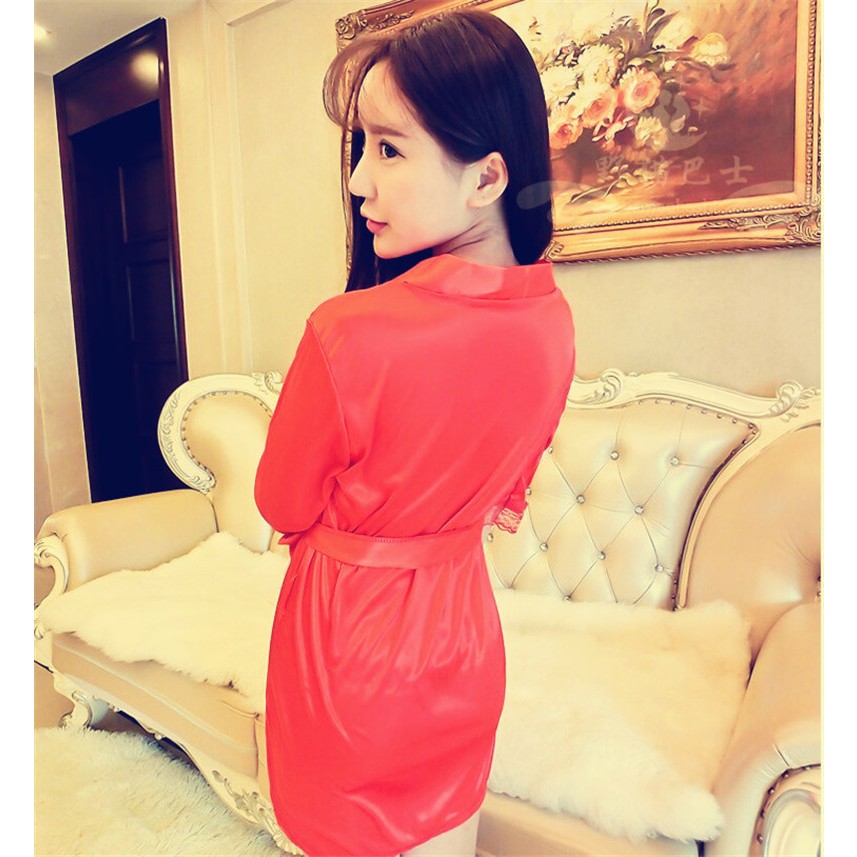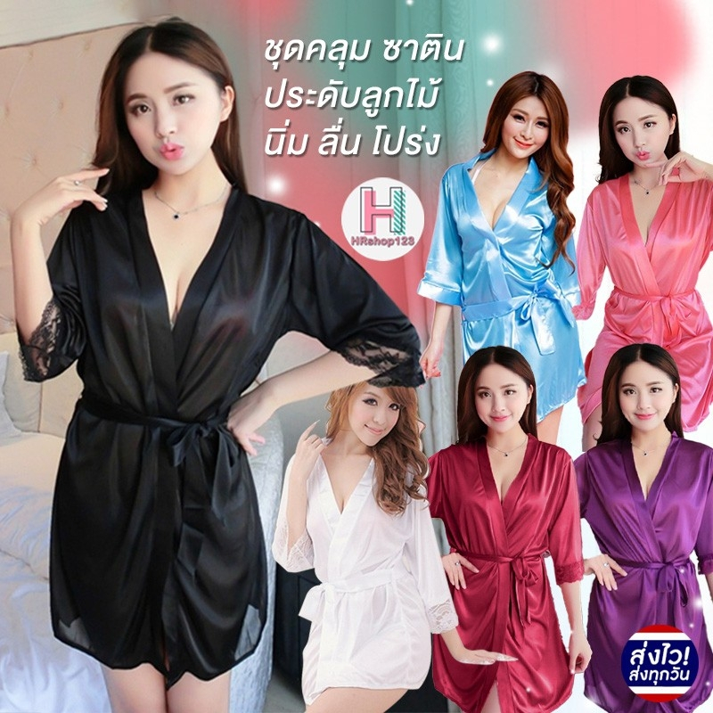 🚚พร้อมส่ง🚚ชุดนอนซาติน ชุดนอนพร้อมเสื้อคลุม เสื้อคลุมอาบน้ำ ชุดนอนสไตล์ญี่ปุ่น เนื้อผ้ามันวาว มีสายคาดเอN006