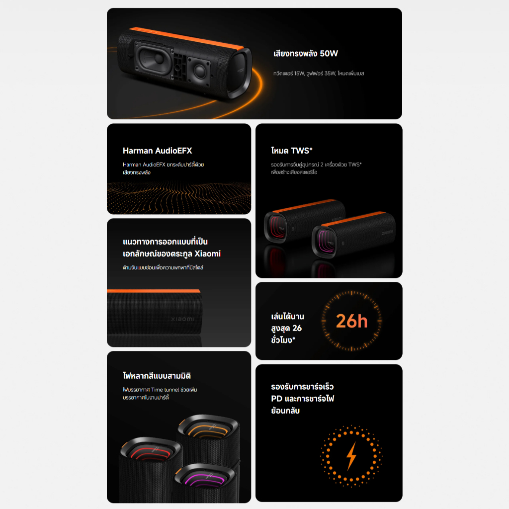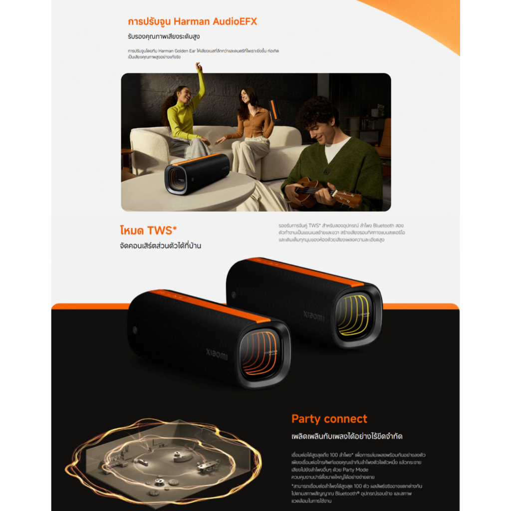 Xiaomi Sound Party ลําโพง Bluetooth I กำลังไฟ 50W I Harman AudioEFX การปรับแต่ง I เอฟเฟกต์แสง3มิติ I ลำโพงบลูทูธ