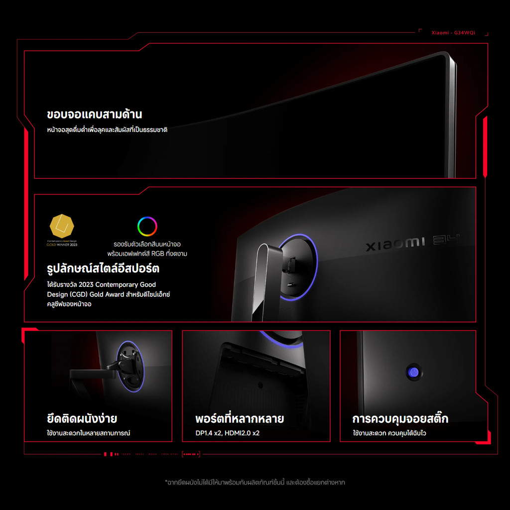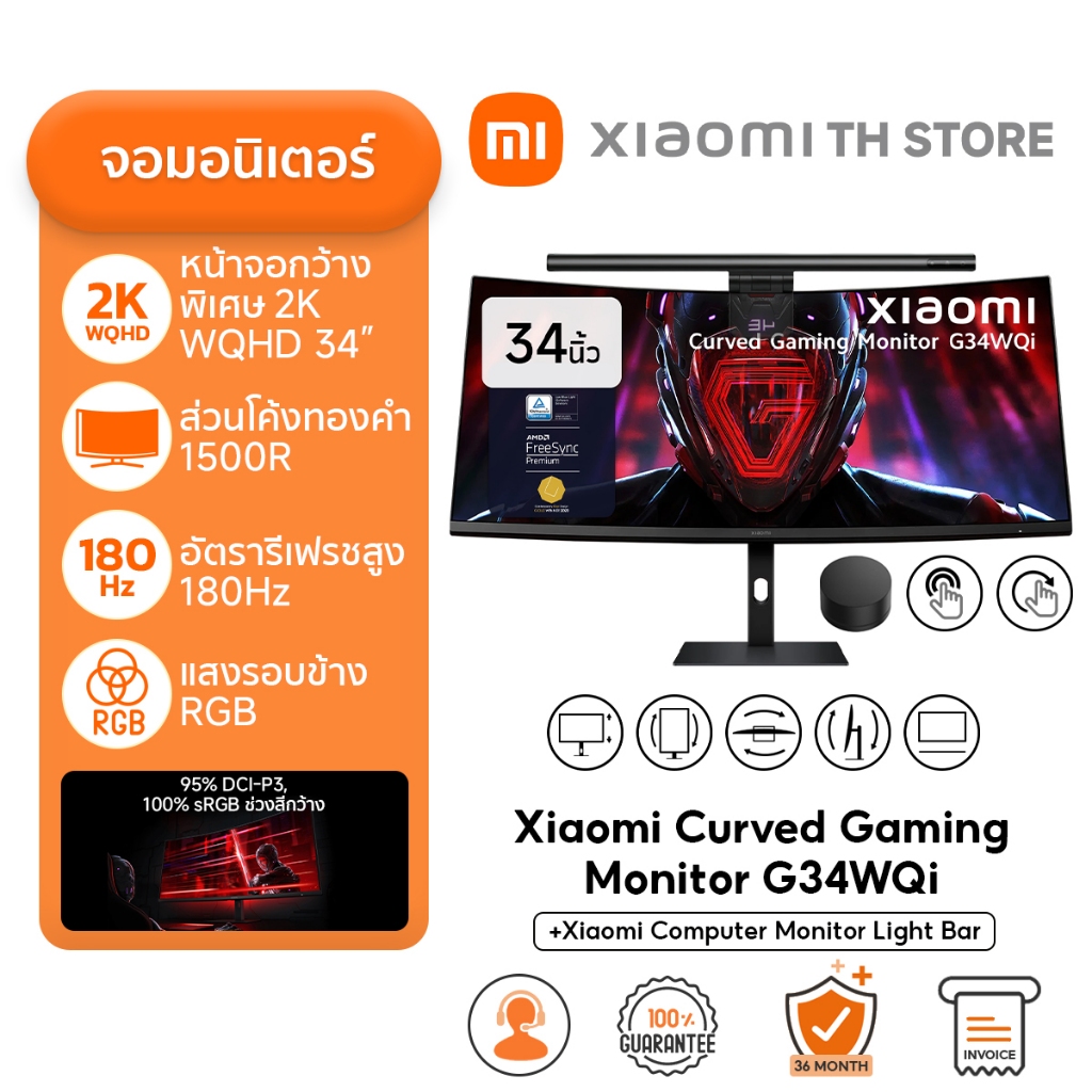 จอคอม Xiaomi Curved Gaming Monitor G34WQi I WQHD 21:9 I อัตรารีเฟรช180Hz I ความโค้ง1500R