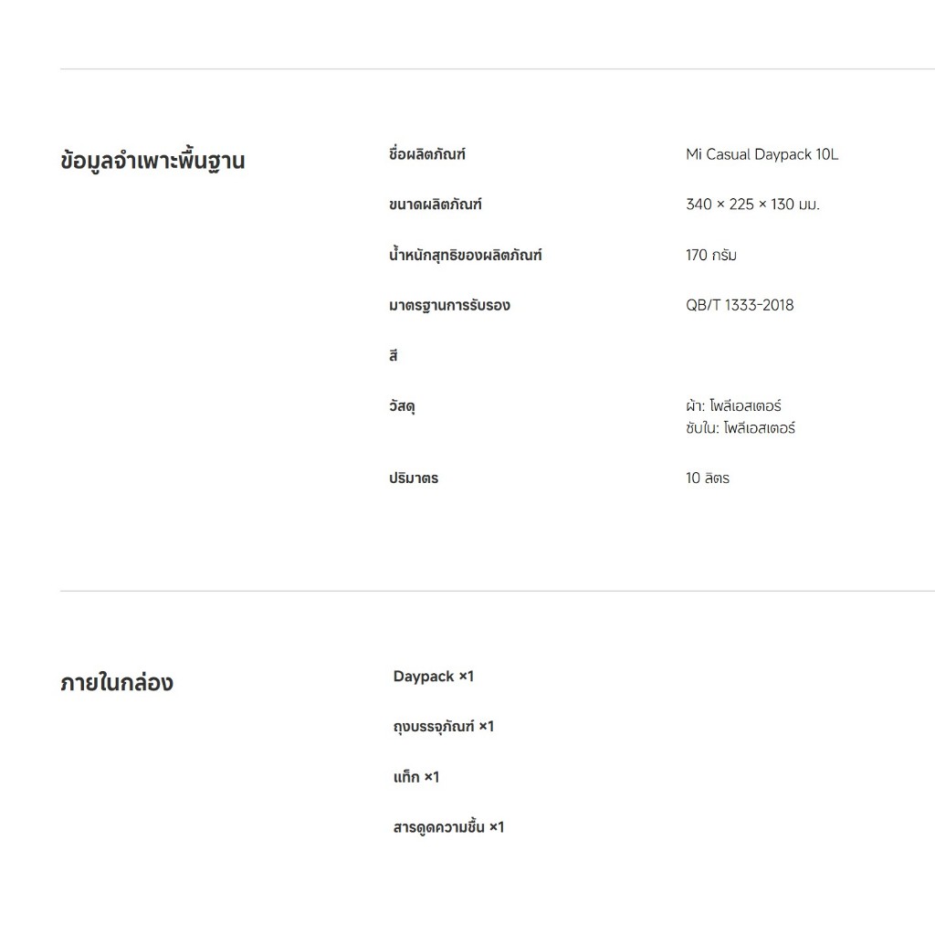 Xiaomi Casual Daypack กระเป๋า I 170g น้ำหนักเบา I กันน้ำกระเซ็น Grade 4 I ซิปรูดแบบคู่ YKK