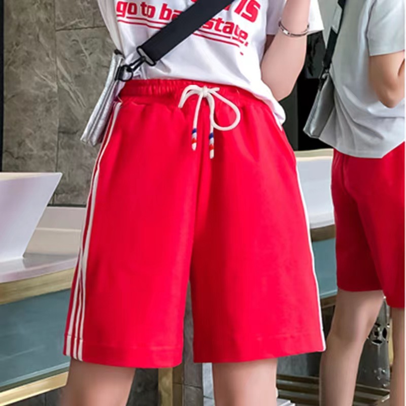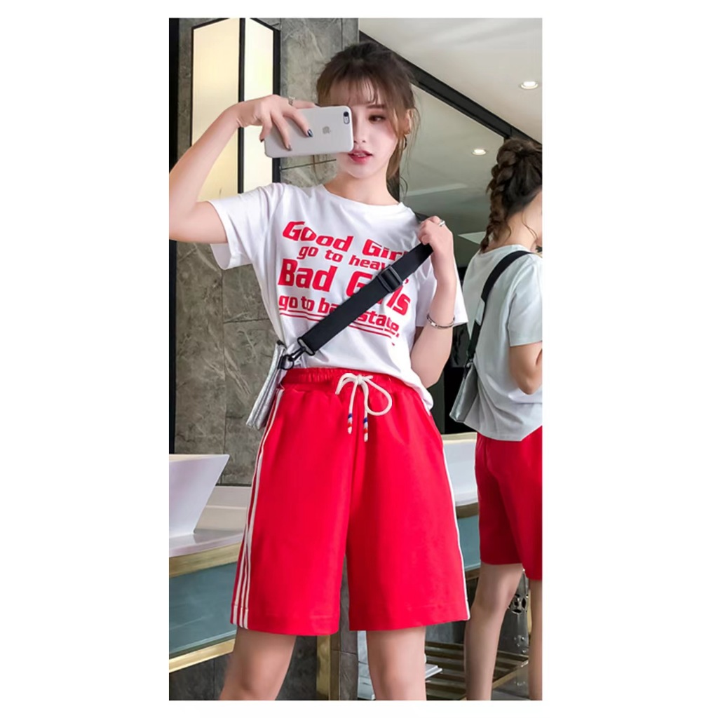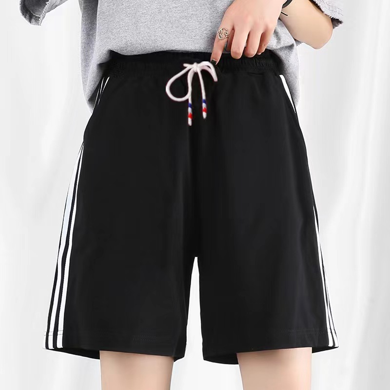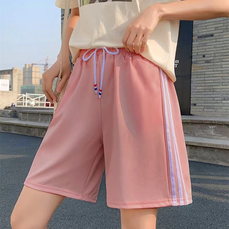 219-2# กางเกงกีฬาขาสั้นเอวสูงทรงหลวมกางเกง 5 ส่วน สไตล์เกาหลี