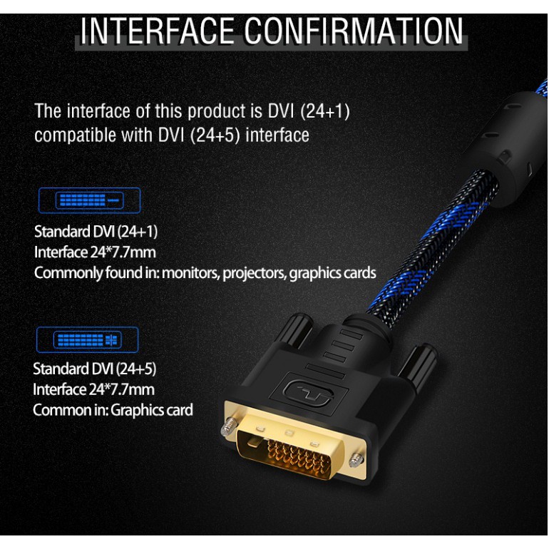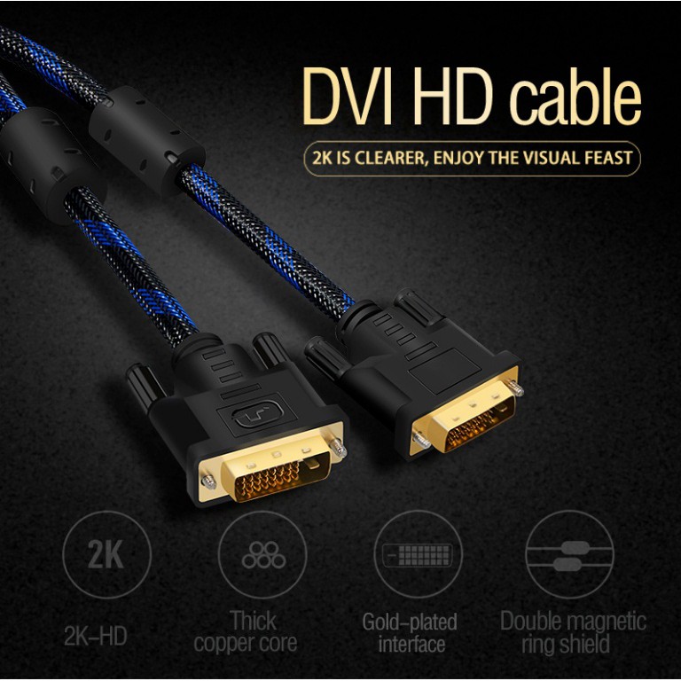 สาย DVI-D 24+1 DVI to DVI Dual Link Male to Male Digital Video Cable Gold Plated with Ferrite Core for Gaming DVD Laptop