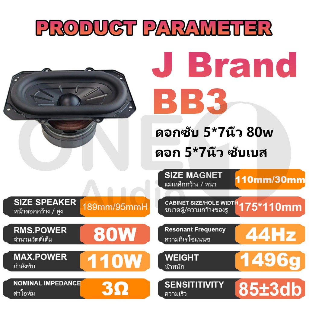 OneAudio J Brand BB3 ดอกซับ 5*7 นิ้ว 3Ω 80W ซับเบส 5*7 นิ้ว J 5*7นิ้ว ดอกhk5*7นิ้ว ลำโพง 5*7 นิ้ว เบส ดอกเบส 5*7 นิ้ว