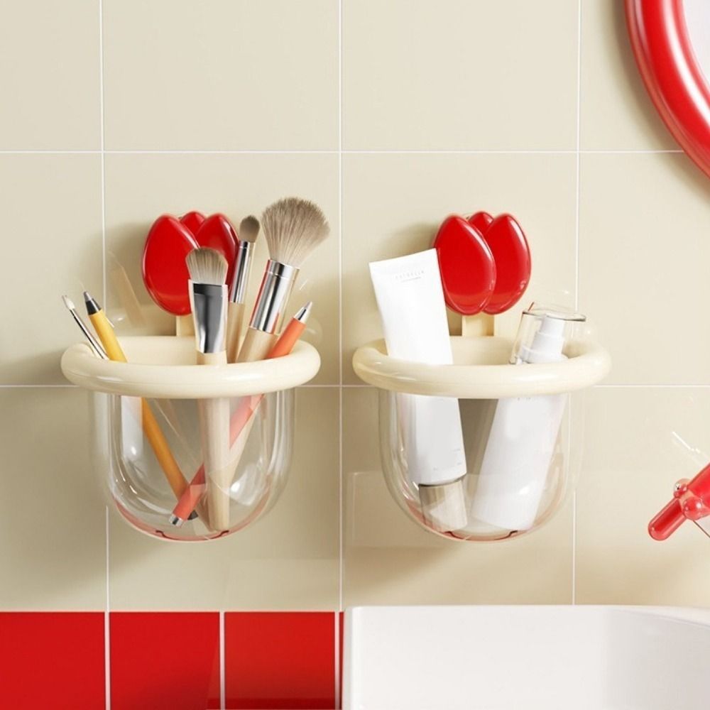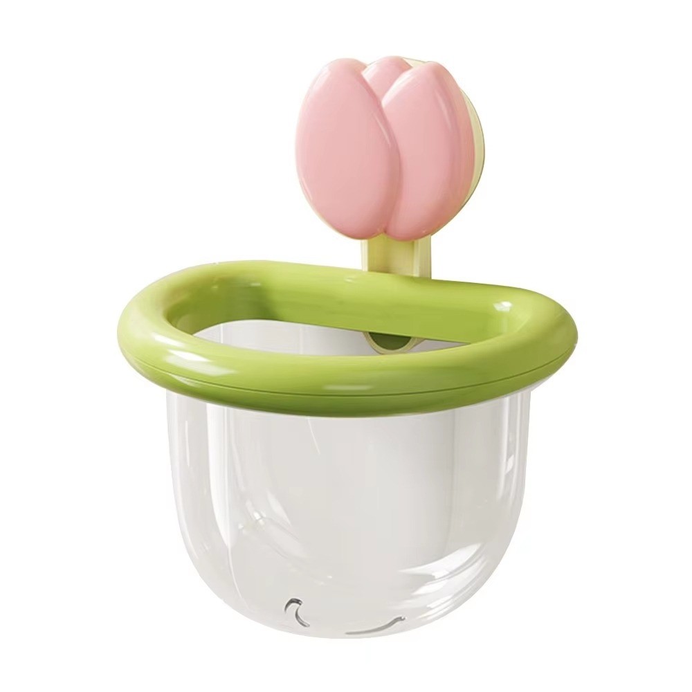 โบ กล่องเก็บรูปร่างทิวลิปตะกร้าเก็บถ้วยดูดระบายน้ําตัวเอง โดปามีน พลาสติกน่ารักติดผนัง ต่อย-ฟรี ที่วางแปรงสีฟันครัว