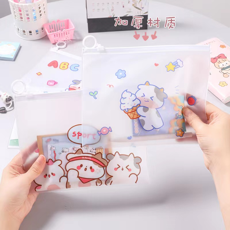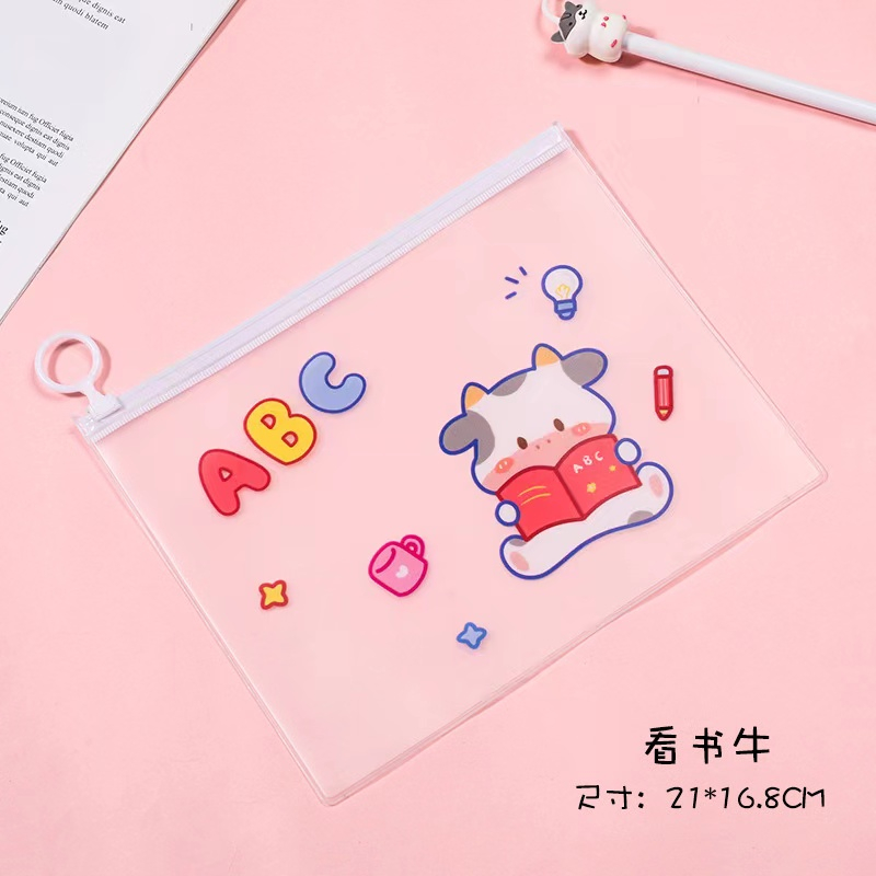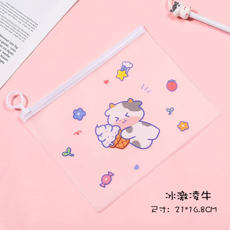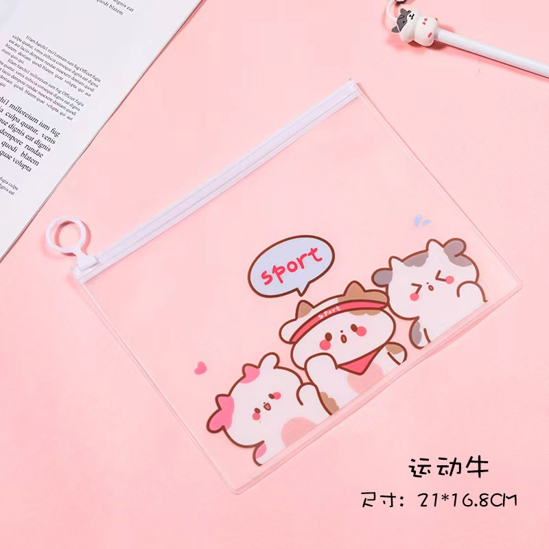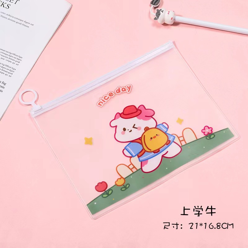 กระเป๋าซิปล็อค กันน้ำ ลายวัวน่ารัก ซองใส กระเป๋าดินสอ อุปกรณ์ใส่เครื่องเขียน