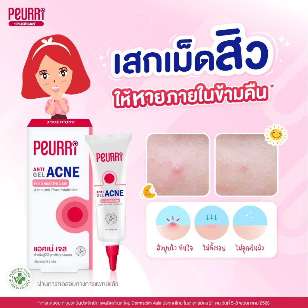 [แพ็ค 2 ชิ้น] PEURRi Anti Acne Gel 8g เจลแต้มสิว