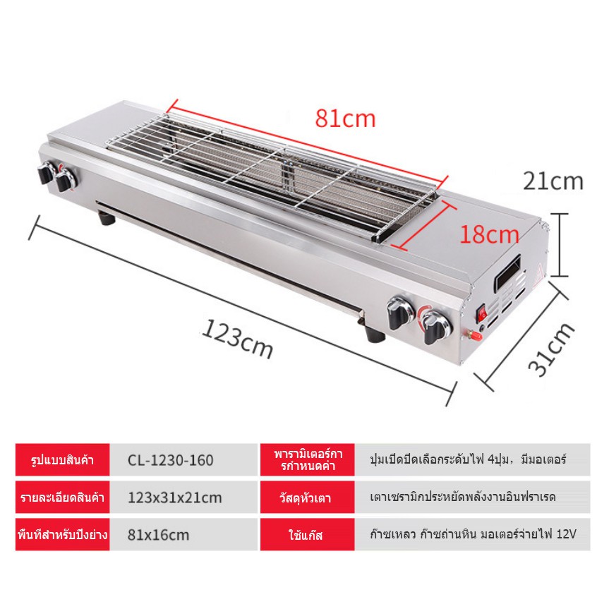 MEIYIJIA เตาย่างไร้ควัน เตาย่างไร้ควัน เตาจานเซรามิกอินฟราเรด ใช้แก๊ส: ก๊าซเหลว ก๊าซถ่านหิน มอเตอร์จ่ายไฟ 12V