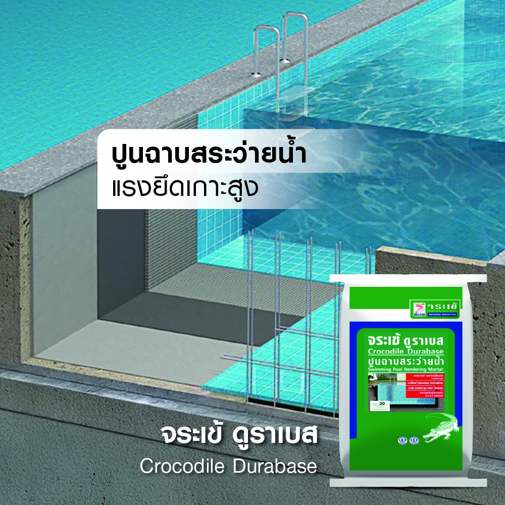 จระเข้ ดูราเบส ปูนฉาบสระว่ายน้ำและผนังคอนกรีต ฉาบลื่น เนื้อเหนียว ไม่หลุดล่อน ขน าด 20 กก.