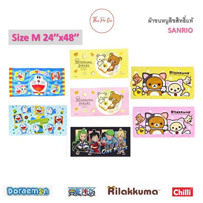 ผ้าขนหนู 24x48นิ้ว ไซส์ M ลิขสิทธิ์แท้100% ผ้าเช็ดตัว เด็ก ขนาดกลาง ราคาส่ง พร้อมส่ง มีเก็บปลายทาง!! Sanrio Doraemon
