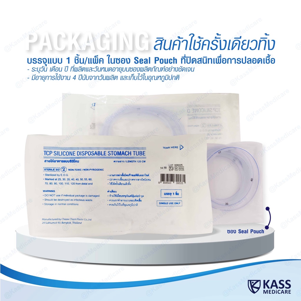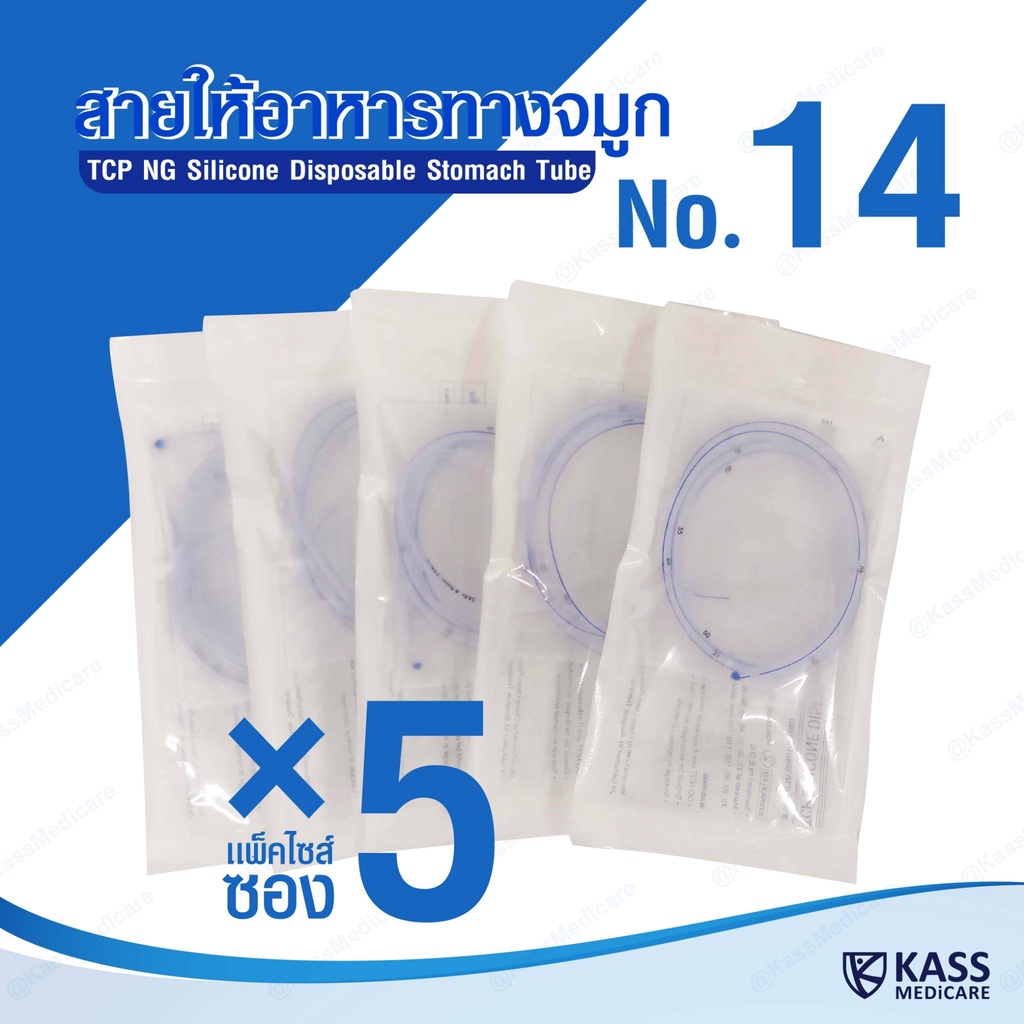 (5 ชิ้น) สายให้อาหารทางจมูก แบบซิลิโคน รุ่นปลายปิด no.14,16 NG Silicone Disposable Stomach Tube