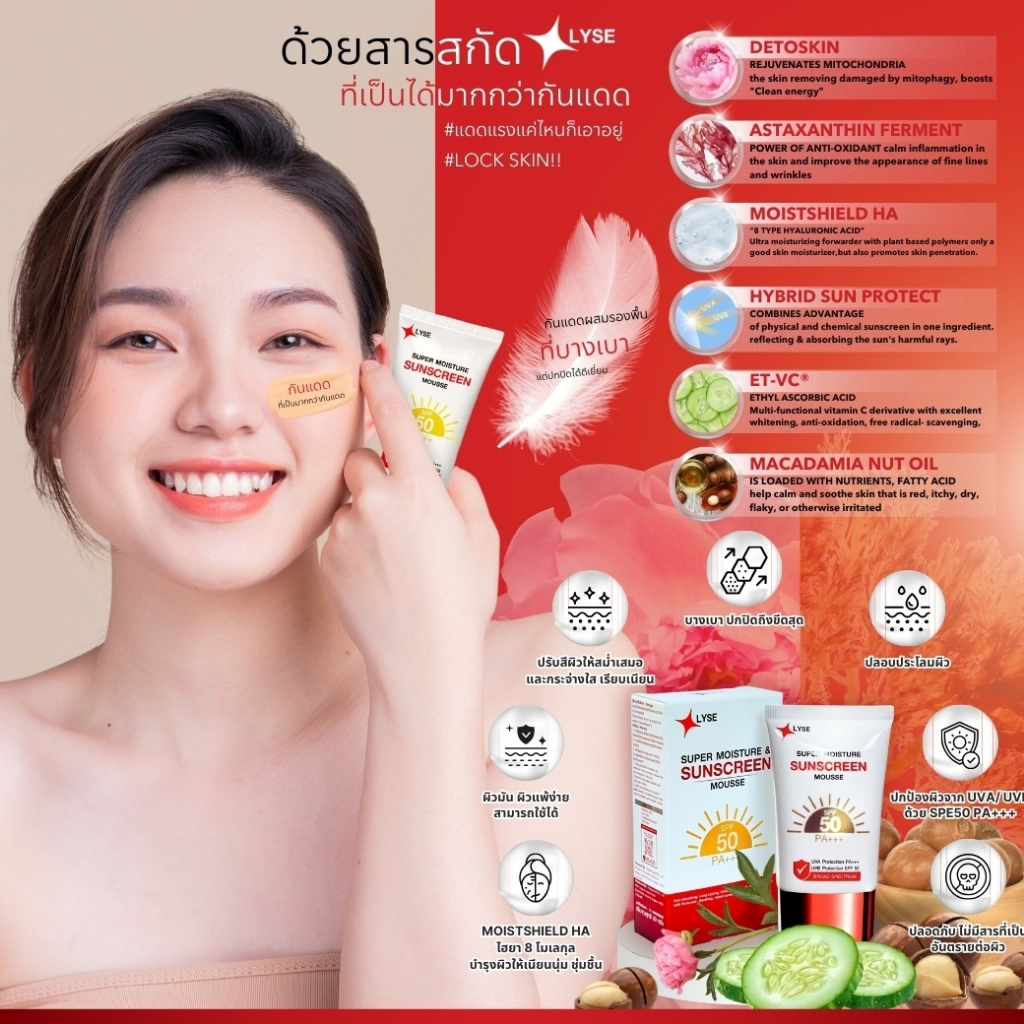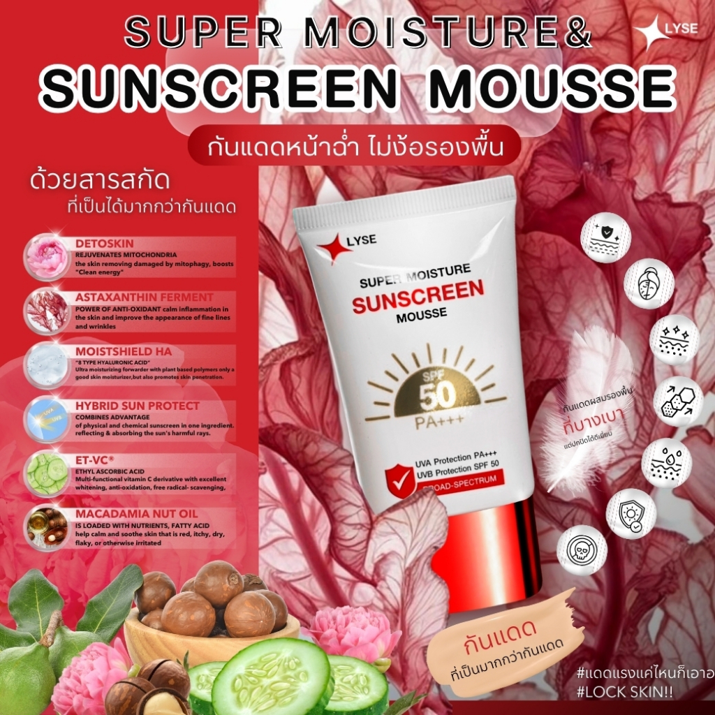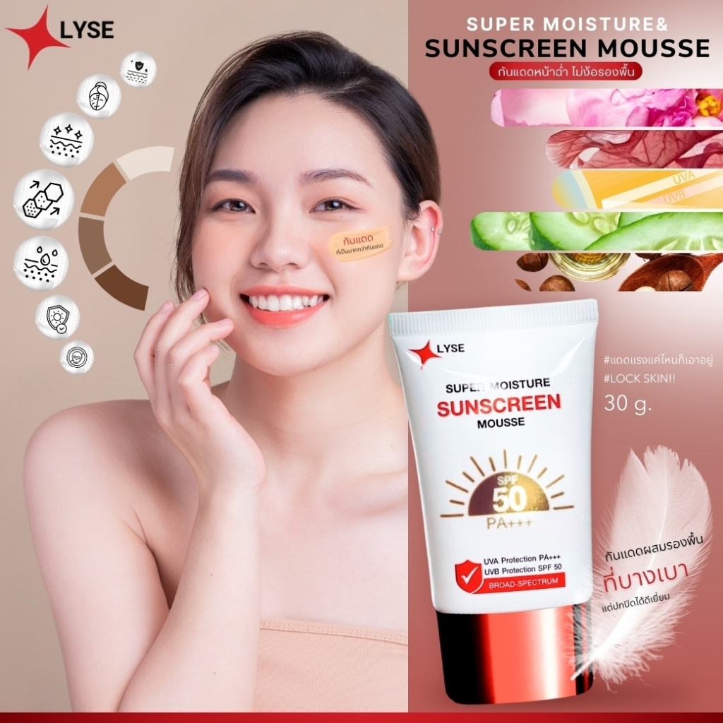 โปร 1 แถม 1 กันแดดไม่ง้อรองพื้น SPF 50 PA+++ 30 กรัม แถม เจล cica ใบบัวบก 1 หลอด ลิเซ่ LYSE 1 ชิ้น