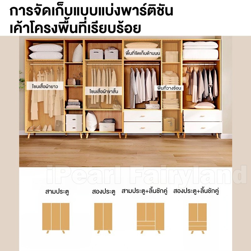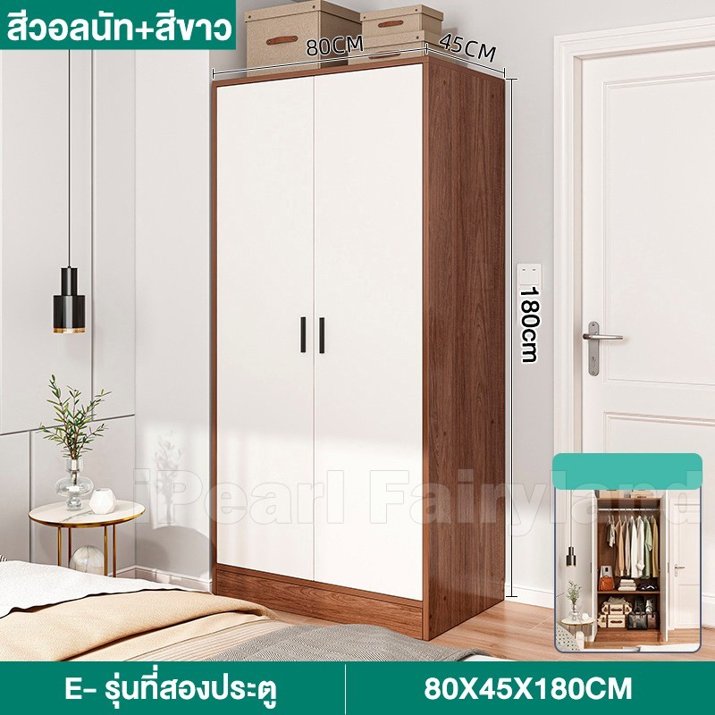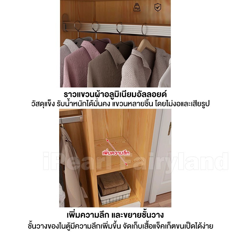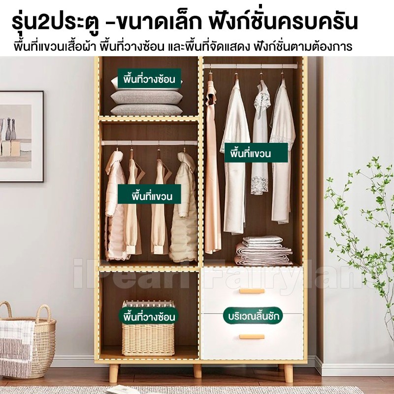 iF ตู้เสื้อผ้า 2ประตู พร้อมลิ้นชัก ตู้เสื้อผ้าไม้ คุณภาพดี แข็งแรง ใส่เสื้อผ้ าได้มาก