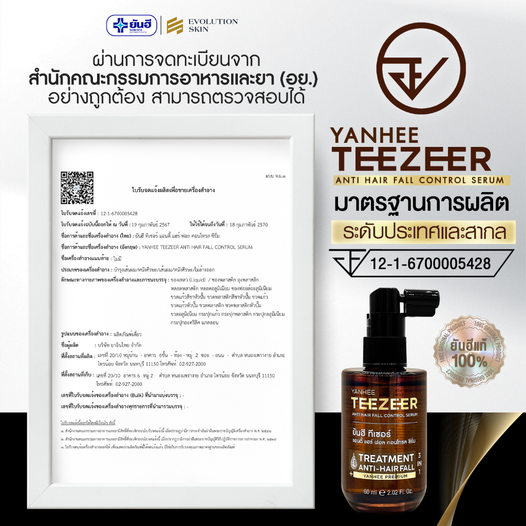 Yanhee Teezeer Anti Hair Fall Control Serum |ของแท้ -ขนาด 60ml | ยันฮี ทีเซอร์ เซรั่ม บำรุงผม ลดผมร่วง เซรั่มผม 60 ml.