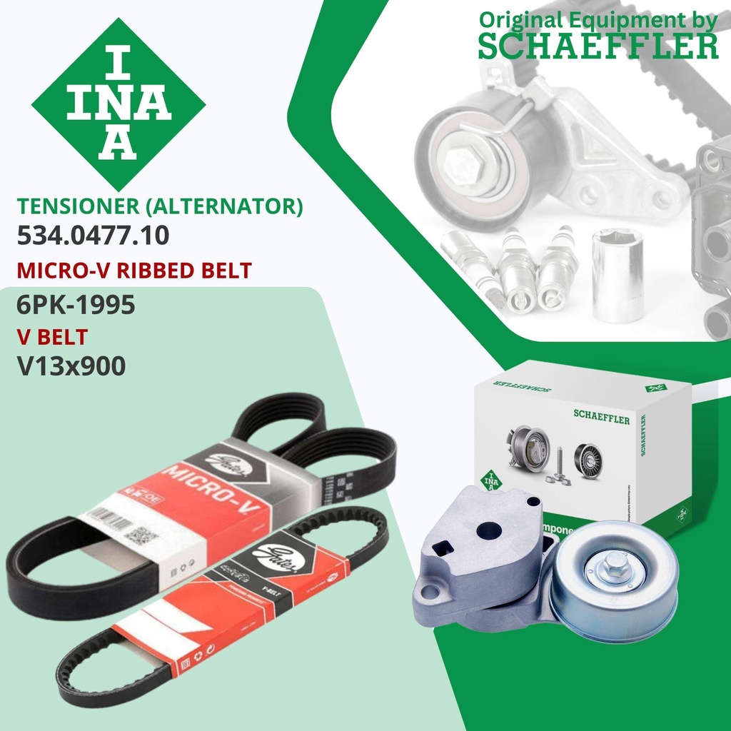 [Gates, INA ] ชุด สายพาน พัดลม ไดชาร์จ เพาเวอร์ Mitsubishi Triton 2.5 4D56 รุ่นไม่มี VG turbo 2009-2014 6PK 1495,V13x900