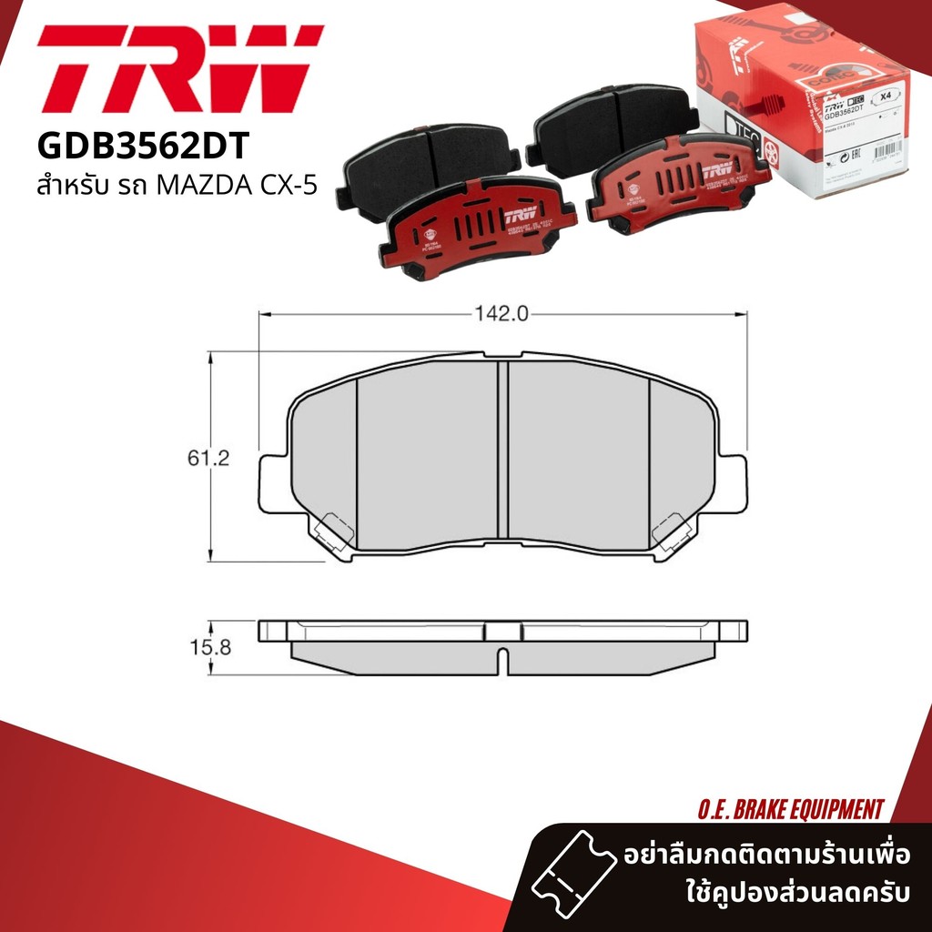✨TRW Premium✨ ผ้าดิสเบรคหน้า ผ้าเบรคหน้า MAZDA CX5, CX-5 gen 1 KE ปี 2012-2018 MAZDA TRW D-TEC GDB 3562 DT