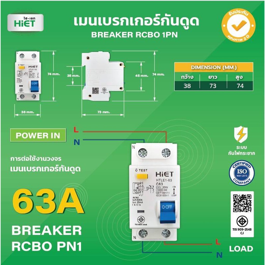 **1PN** Hiet เมนกันดูด RCBO 2Pole 10kA เซอร์กิตเบรกเกอร์กันดูด กันดูด เบรกเกอร์กันดูด ติดราง