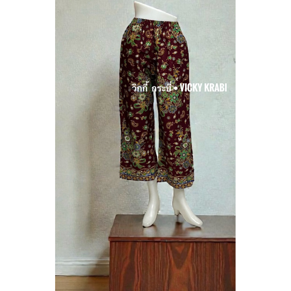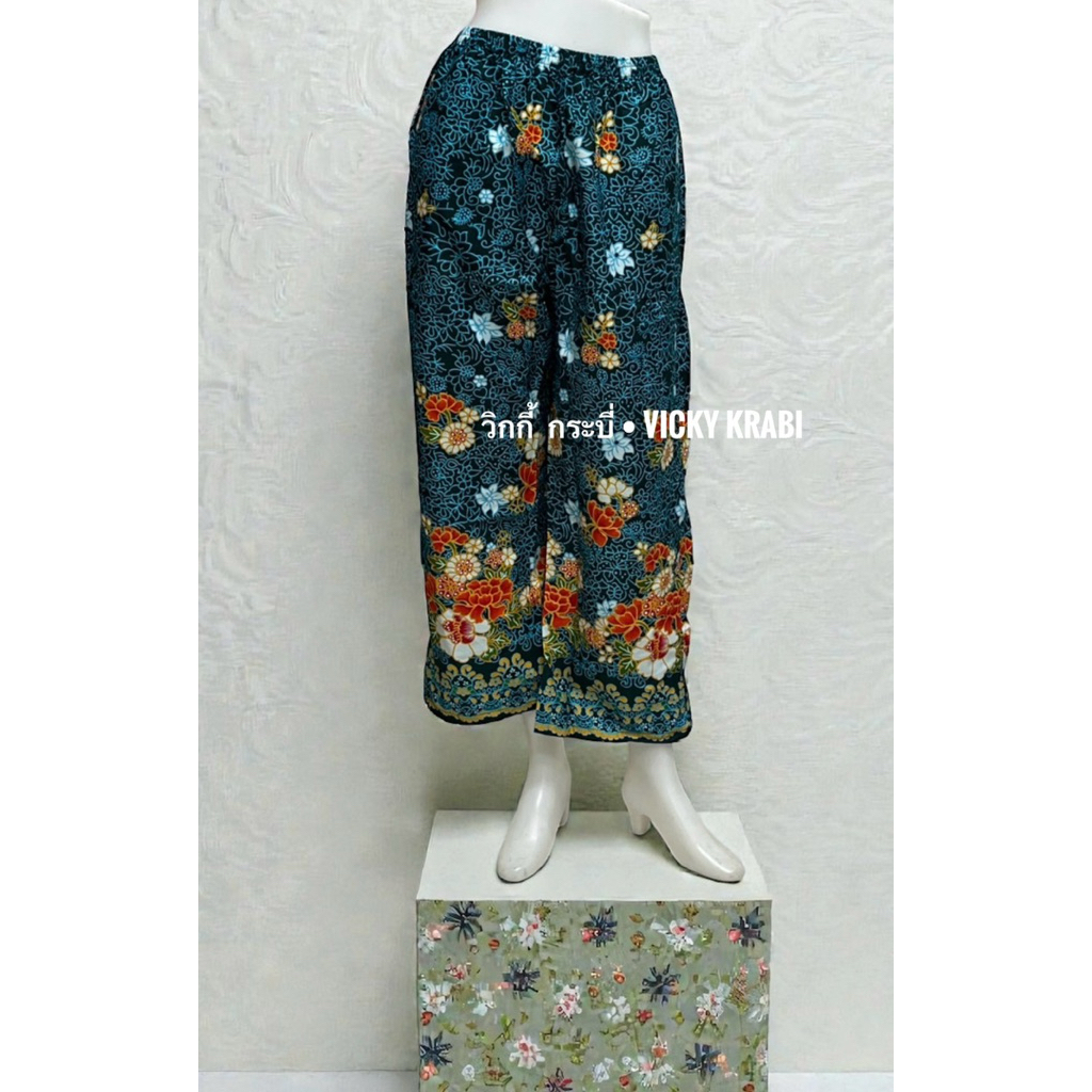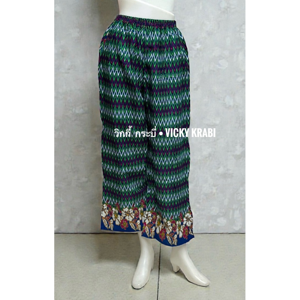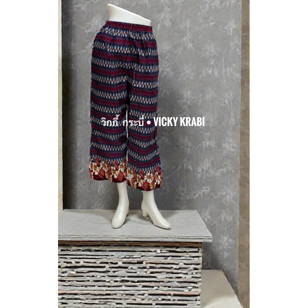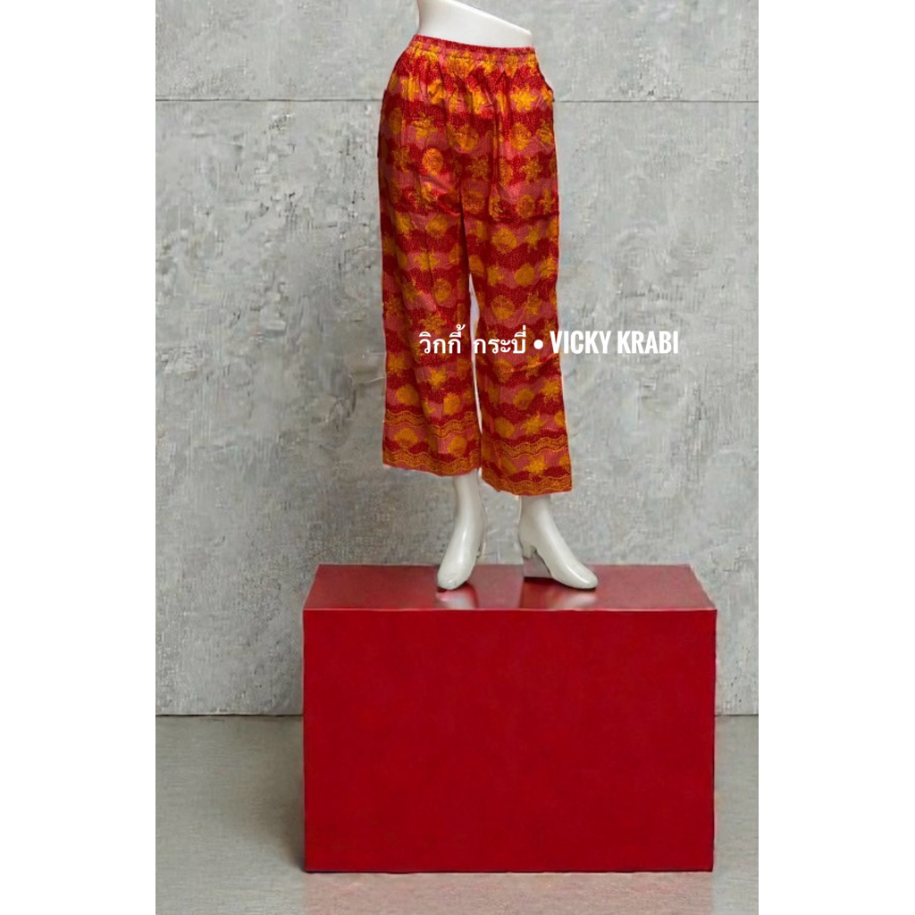 กางเกงผ้าปาเต๊ะผู้หญิง Free Size เอวยางยืด Cotton 100% ใส่สบาย กระเป๋า 2 ข้าง ลายพื้นเมืองแฟชั่น