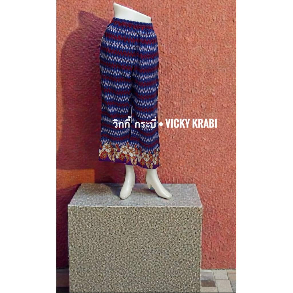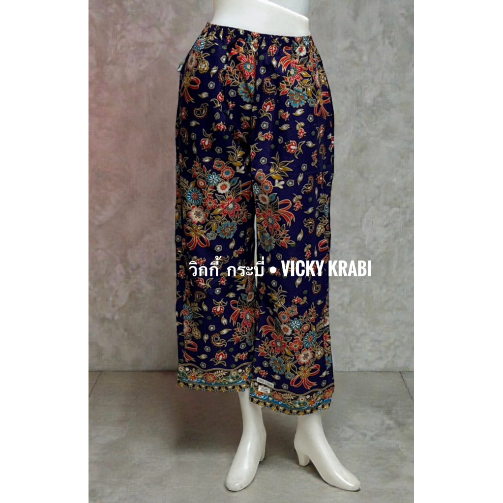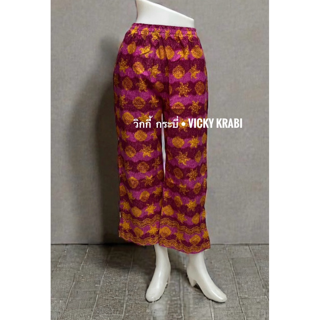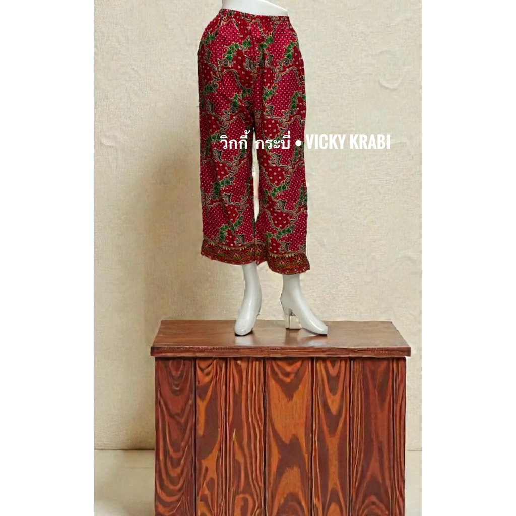 กางเกงผ้าปาเต๊ะผู้หญิง Free Size เอวยางยืด Cotton 100% ใส่สบาย กระเป๋า 2 ข้าง ลายพื้นเมืองแฟชั่น