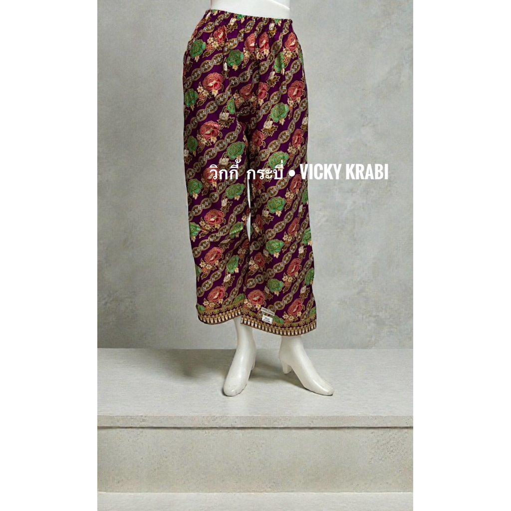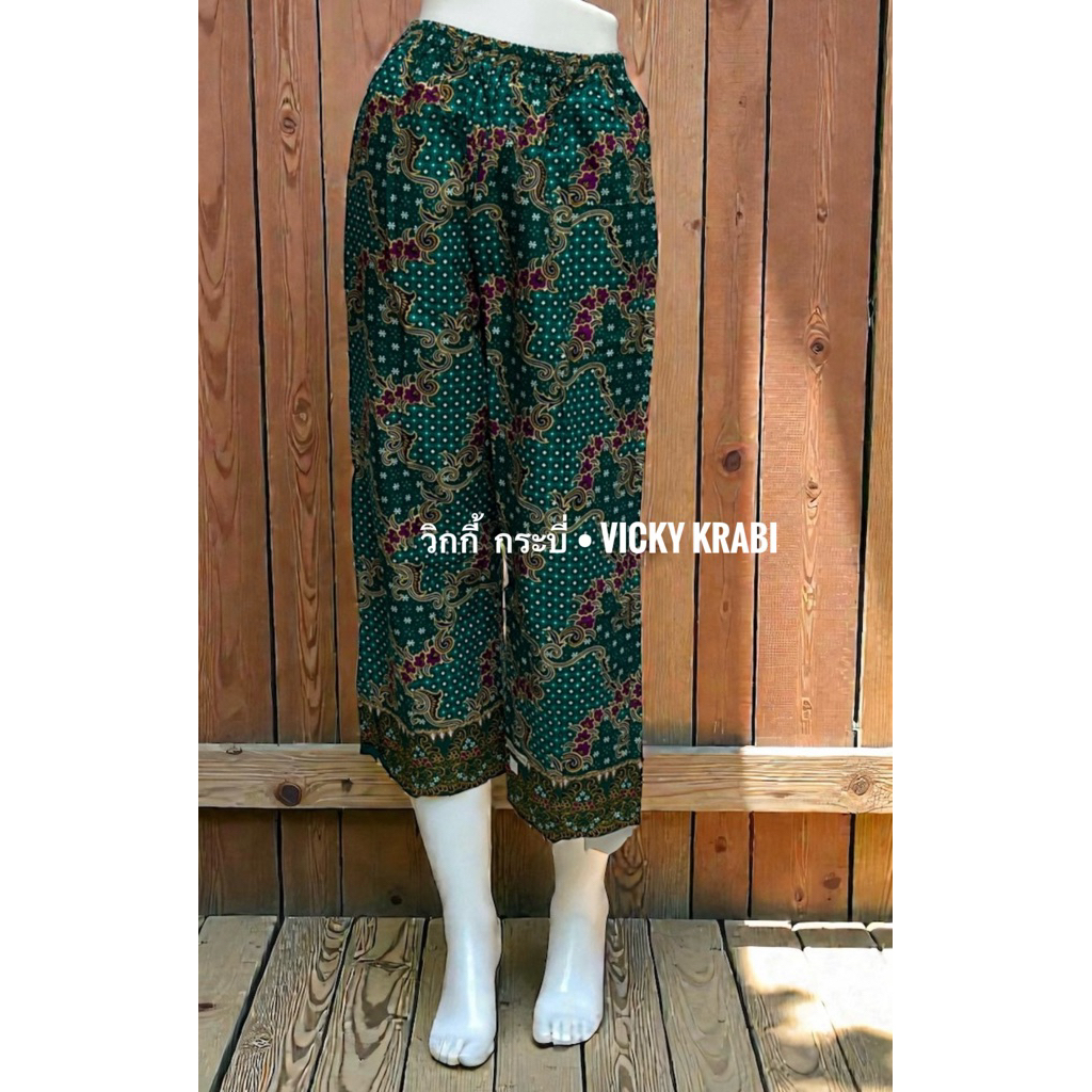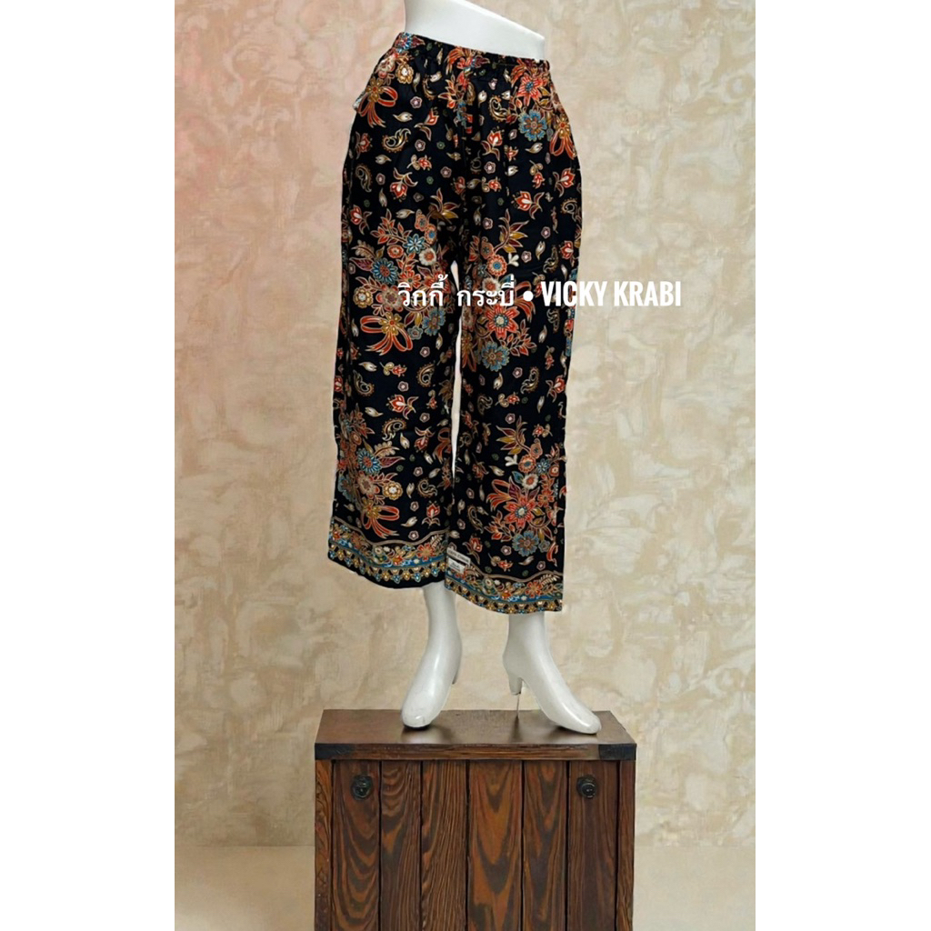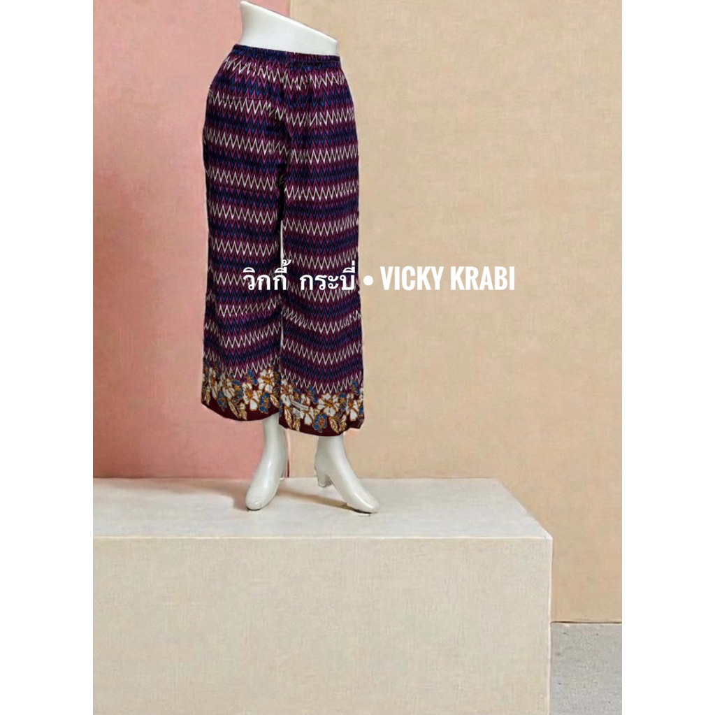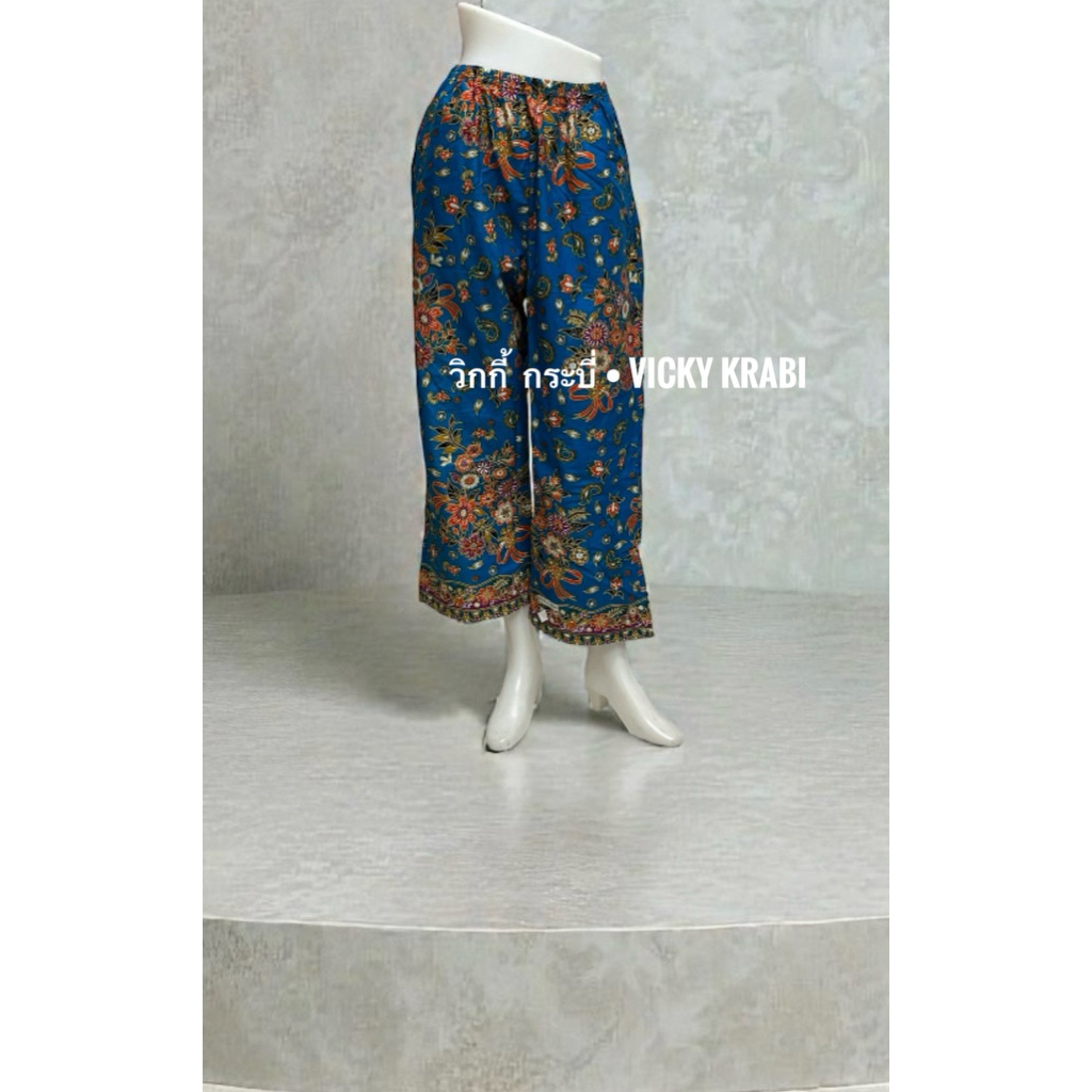 กางเกงผ้าปาเต๊ะผู้หญิง Free Size เอวยางยืด Cotton 100% ใส่สบาย กระเป๋า 2 ข้าง ลายพื้นเมืองแฟชั่น