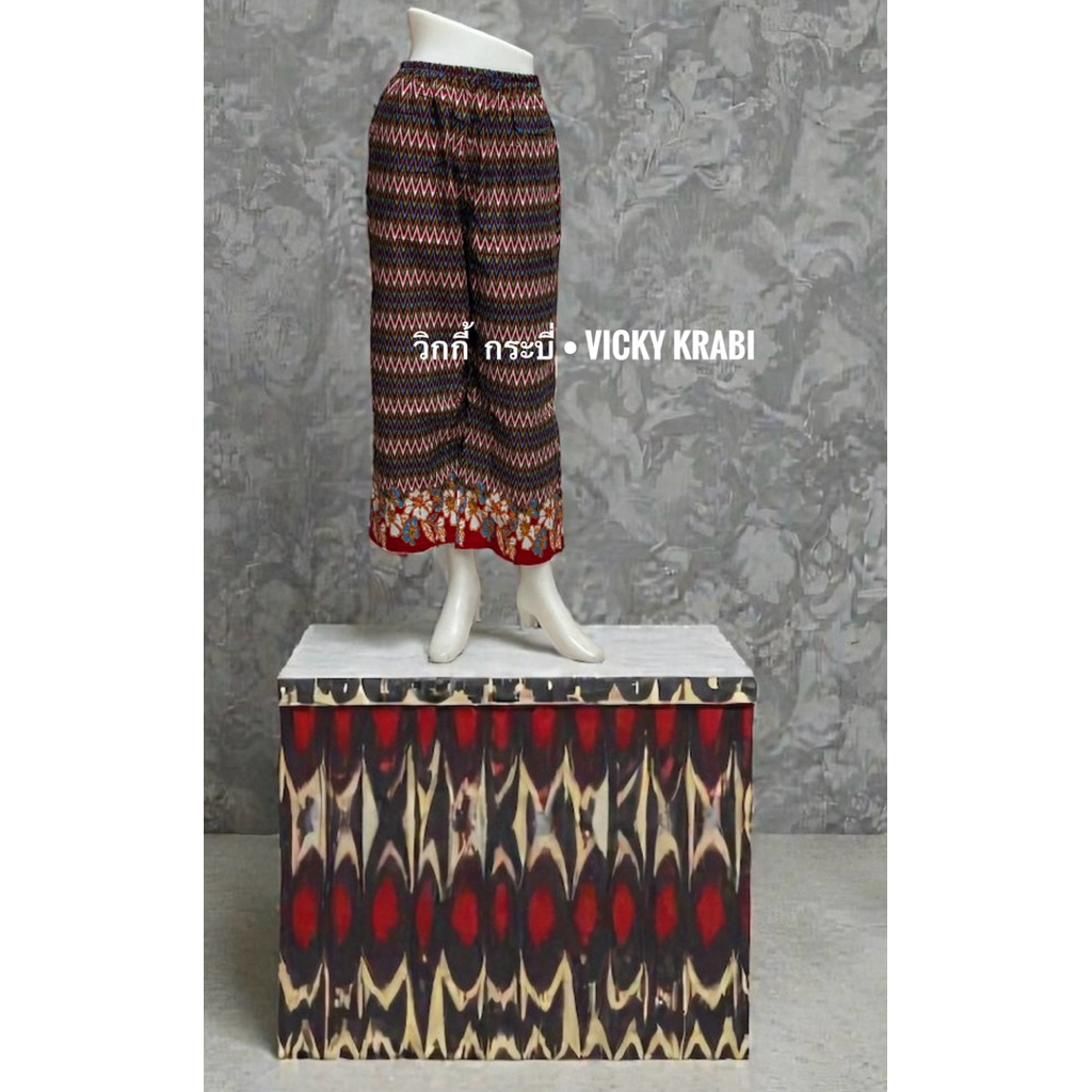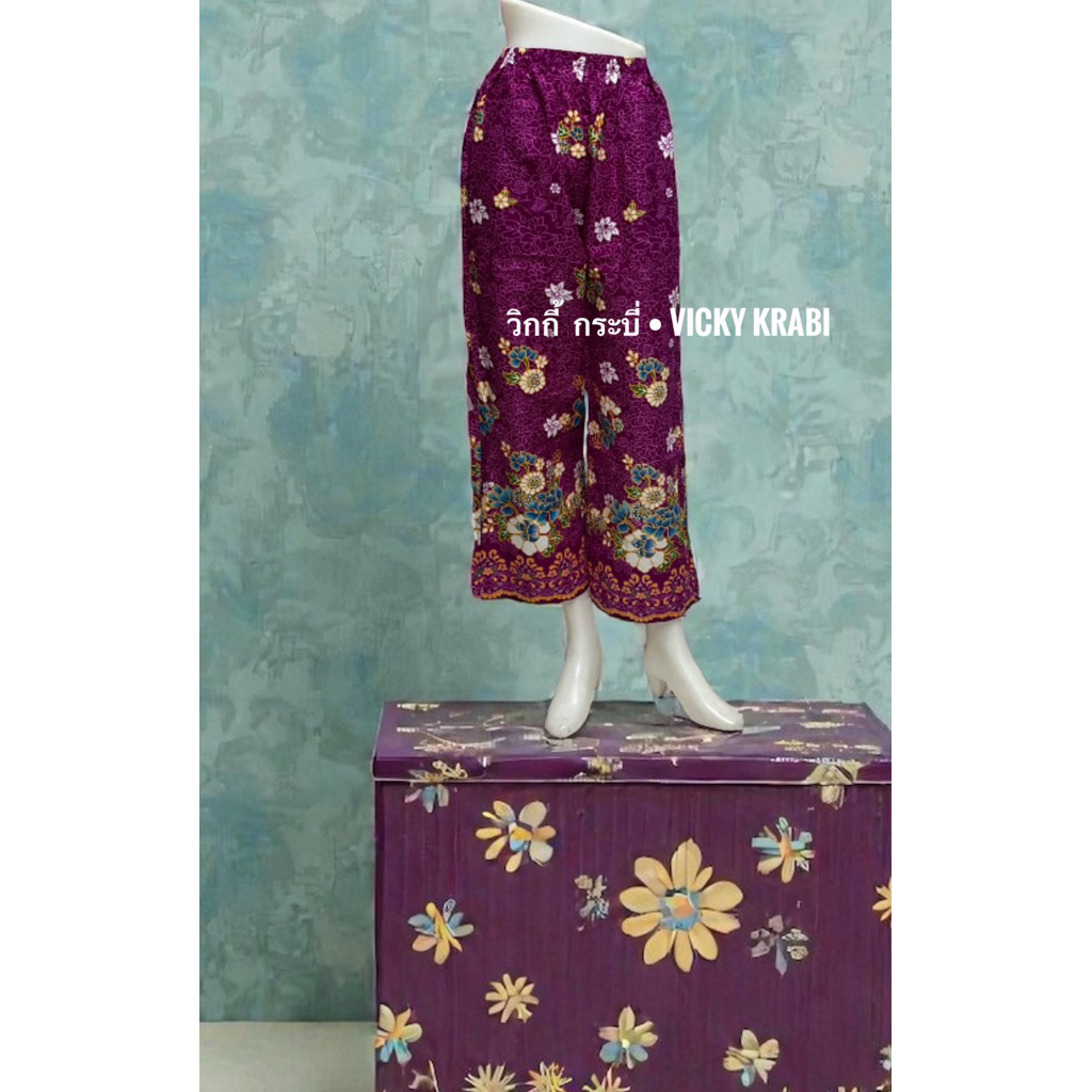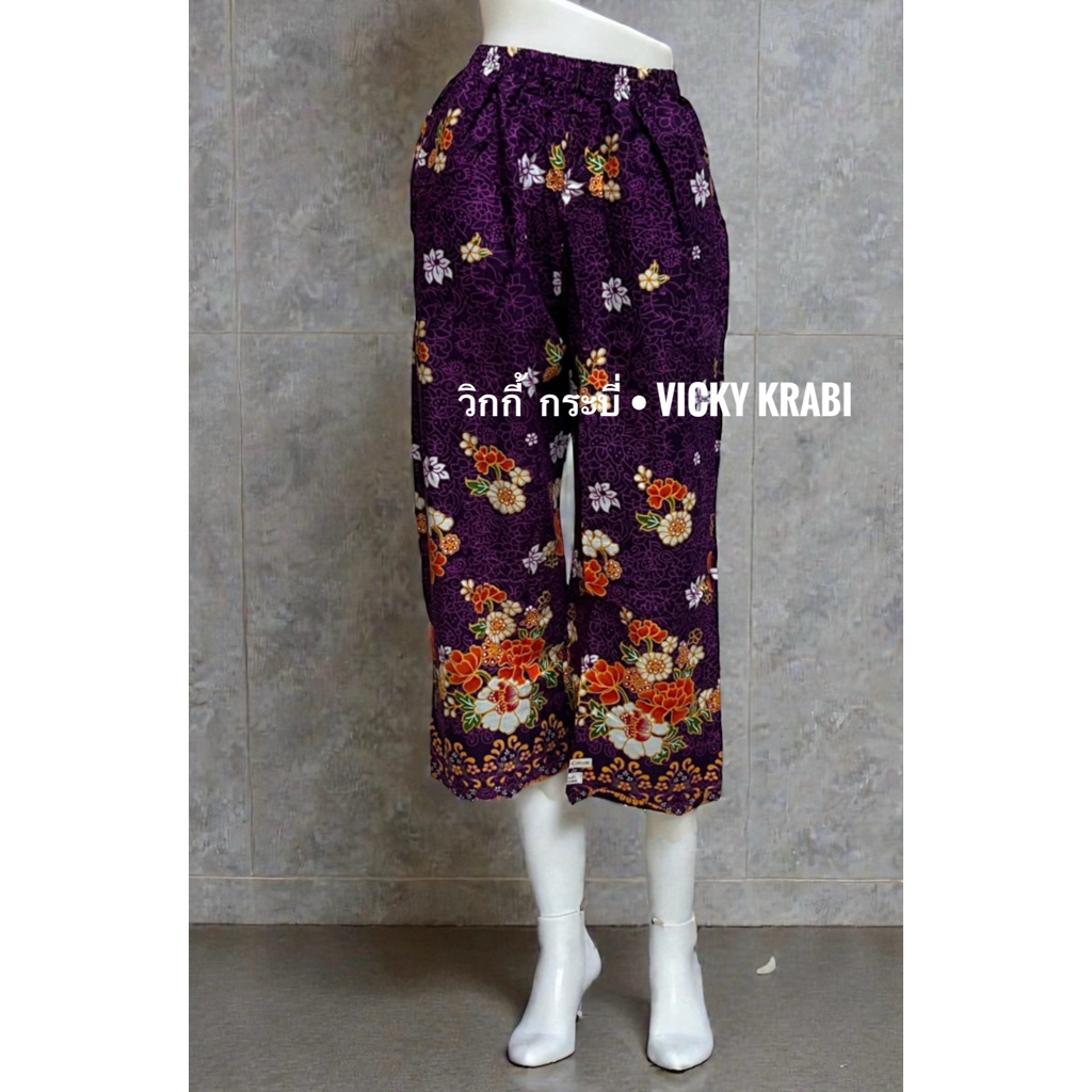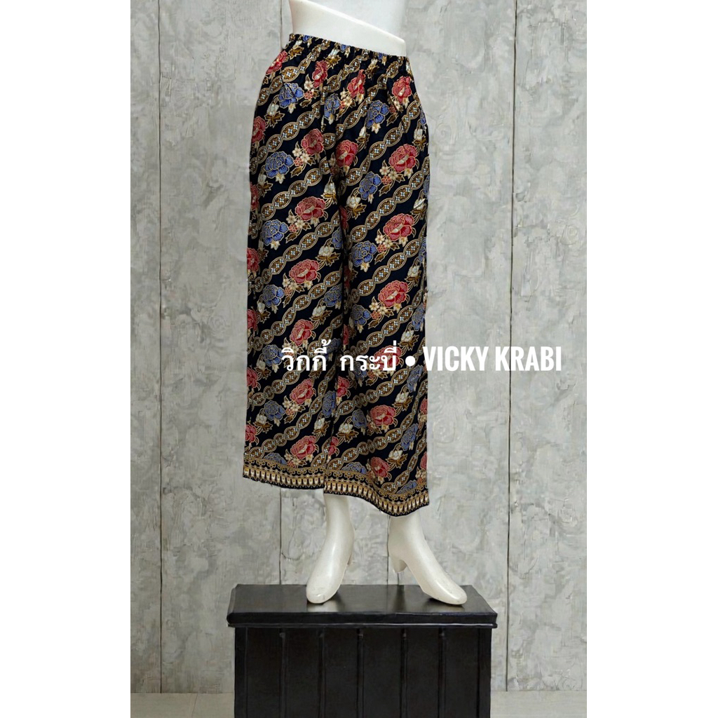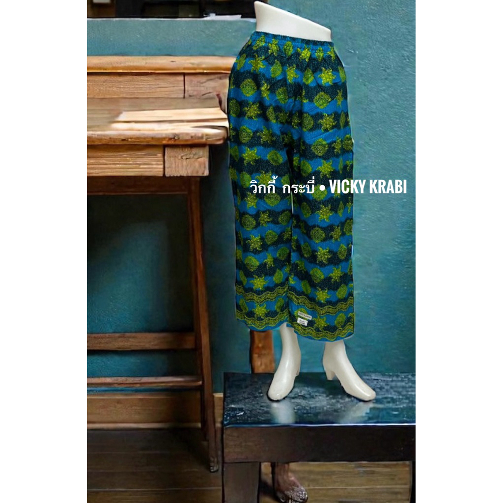 กางเกงผ้าปาเต๊ะผู้หญิง Free Size เอวยางยืด Cotton 100% ใส่สบาย กระเป๋า 2 ข้าง ลายพื้นเมืองแฟชั่น