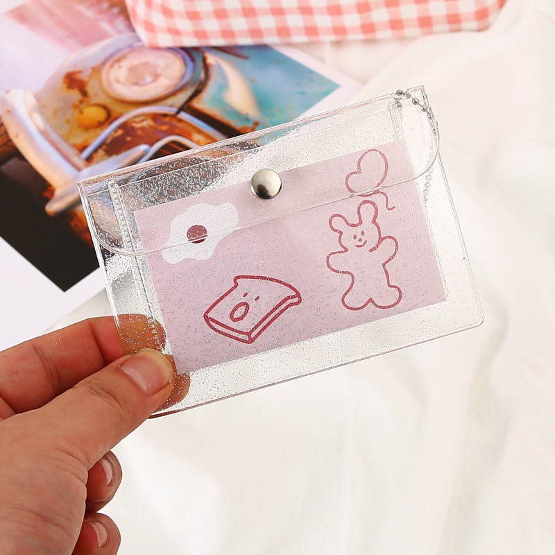 กระเป๋าสตางค์ PVC สีใส ใส่เหรียญ ใส่บัตร อเนกประสงค์ 🍀🌴🍄