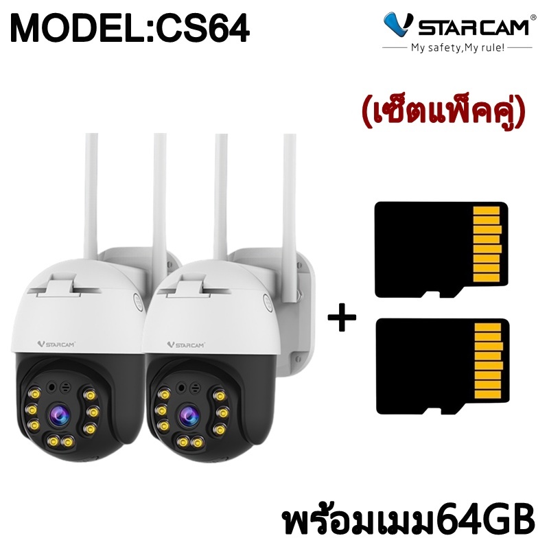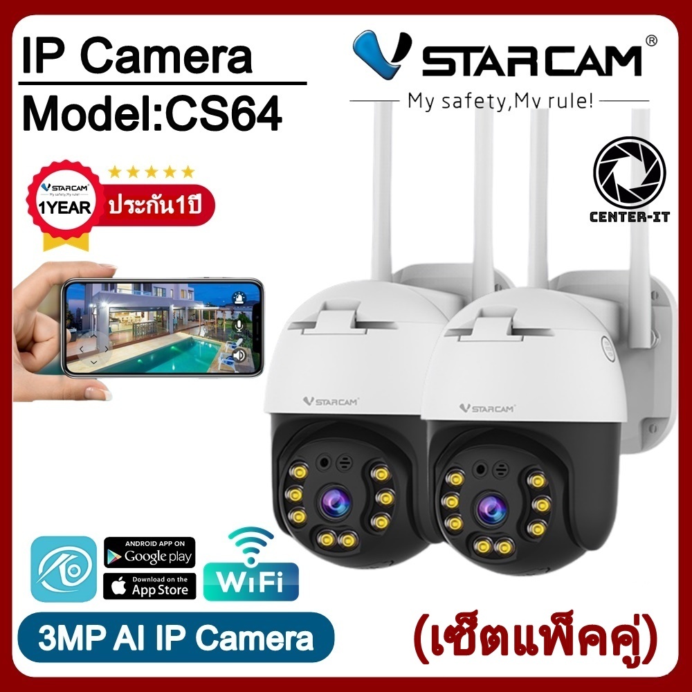 Vstarcam กล้องวงจรปิดใช้ภายนอก รุ่นCS64 ความละเอียด3ล้านพิกเซล พูดโต้ตอบได้ มีAIสัญญาณเตือนภัย