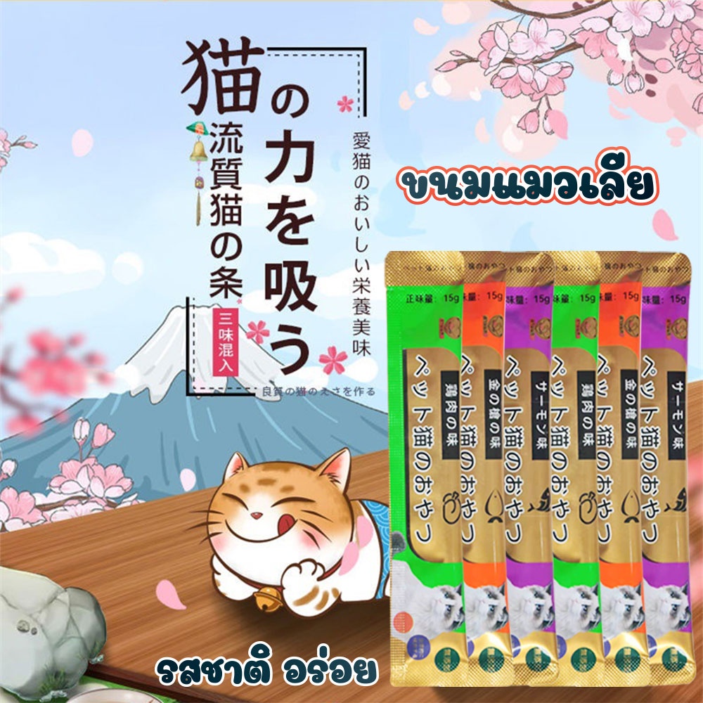 🐱นำเข้าจากประเทศญี่ปุ่น🐱ซื้อ 10 แถม 1🐱ขนมแมวเลีย ขนาด15กรัม อาหารแมว รสชาติอร่อยถูกใจน้องเหมียว ชอบมาก