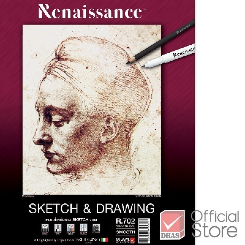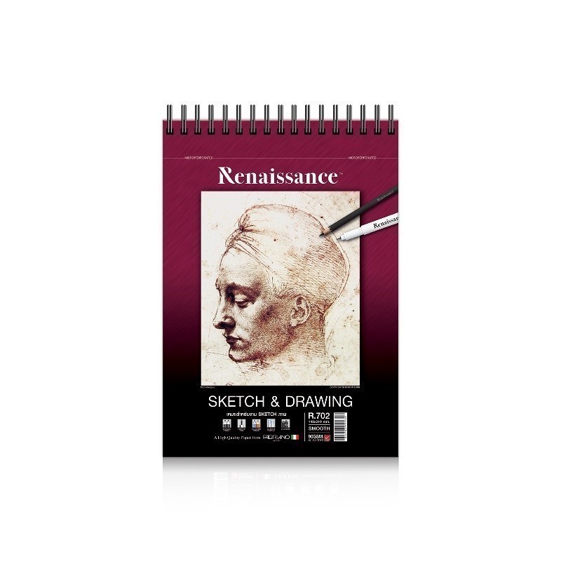 Renaissance สมุดวาดเขียน สมุดสเก็ตช์ 90 แกรม A5 ผิวเรียบ R-702 ร้อยลวด จำนวน 1 เล่ม